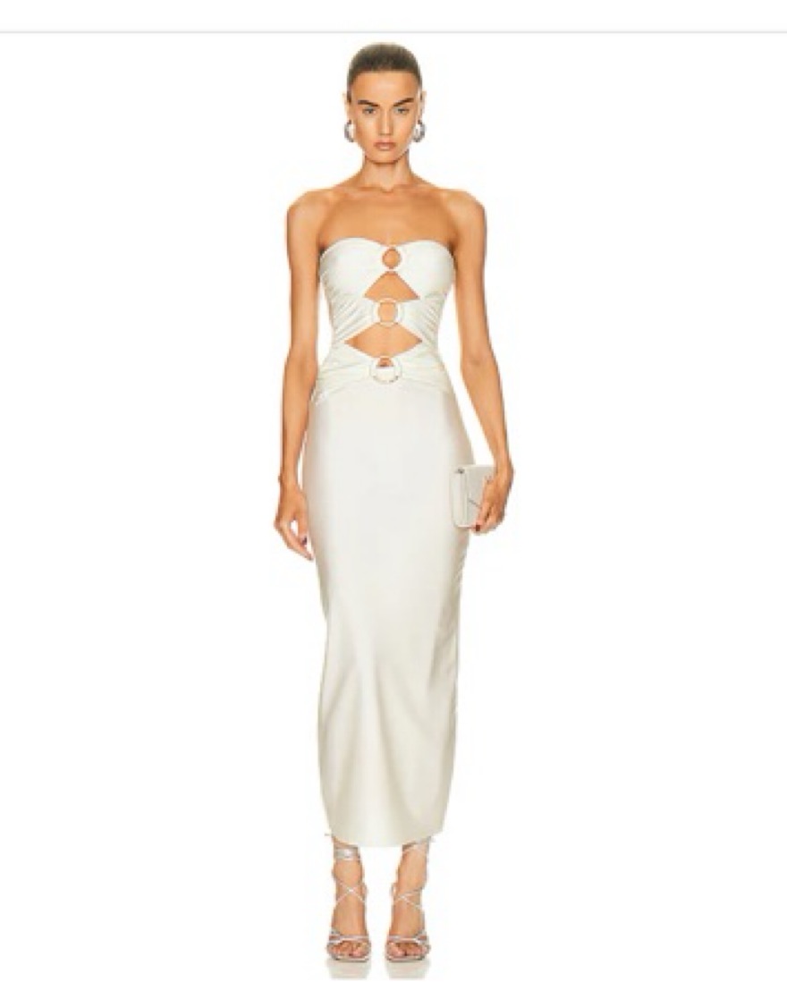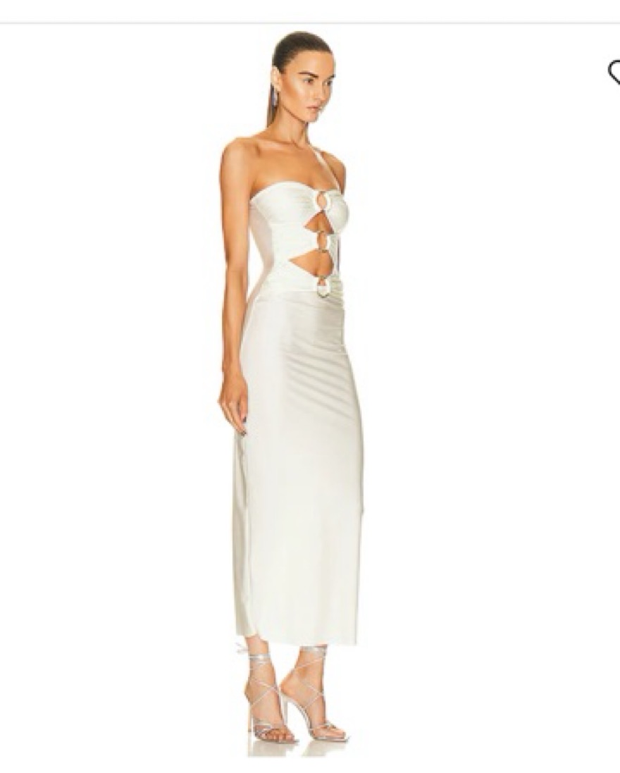 Ivory maxi dress with gold hoop cut outs