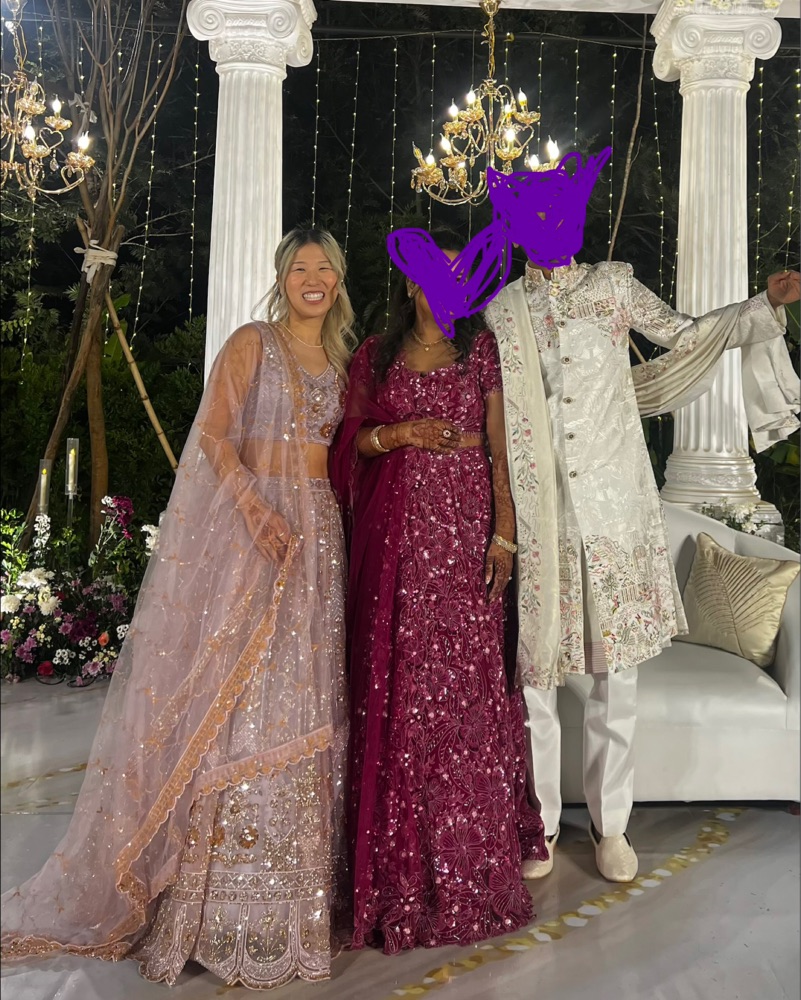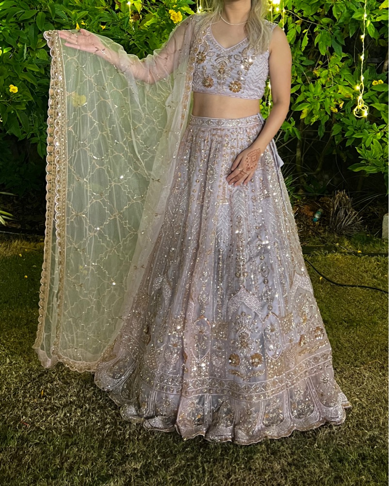 XS, maybe runs XXS. super beautiful and more pink than purple ! hand stitched embroidery and two layers of cancan to make the skirt have form. the skirt is adjustable size and i’m 5’3”.
