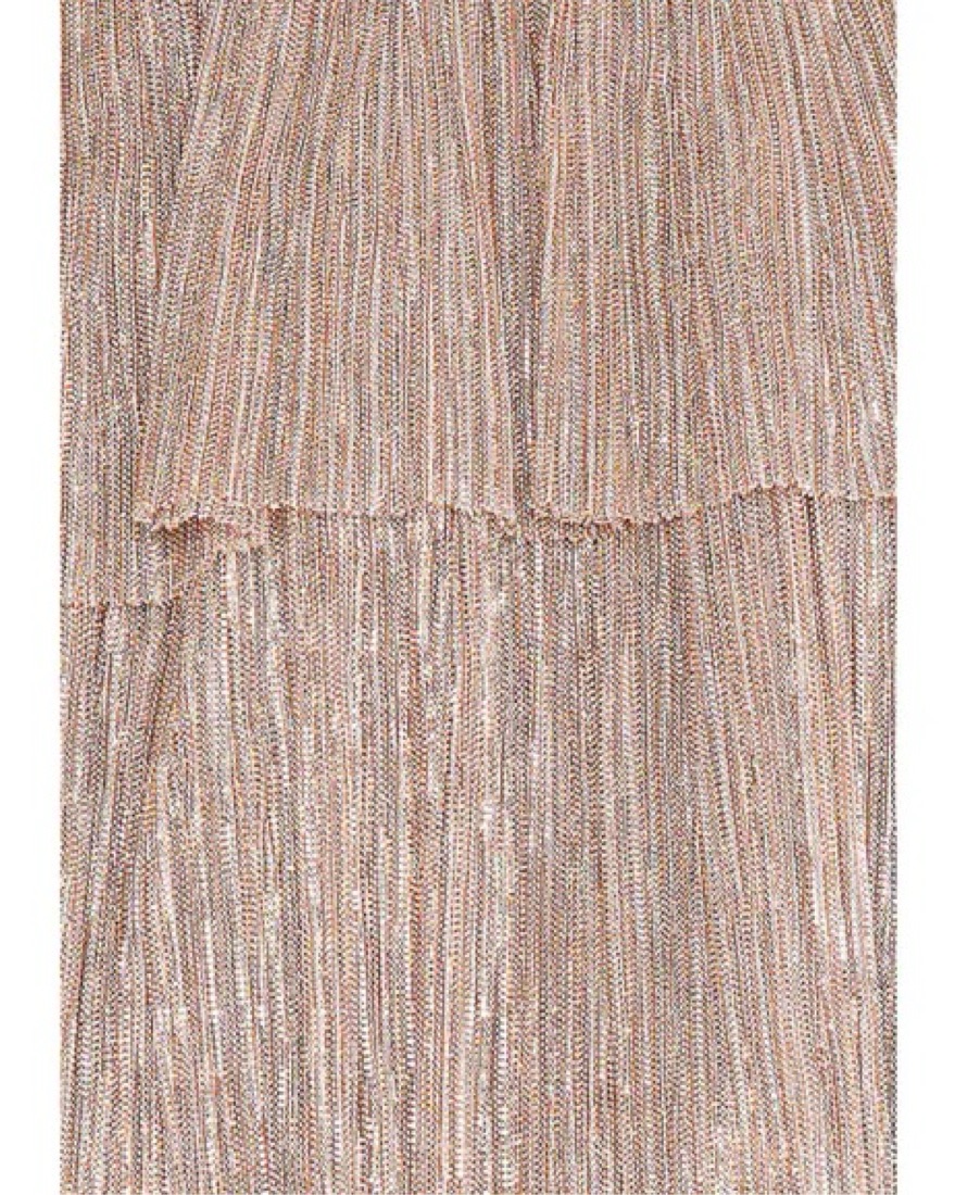Fun party dress or dress it up for more formal look. Rose gold/blush metallic color. Belt is stretchy and removable. Deep V cut in the front but has a hook for more conservative looks.