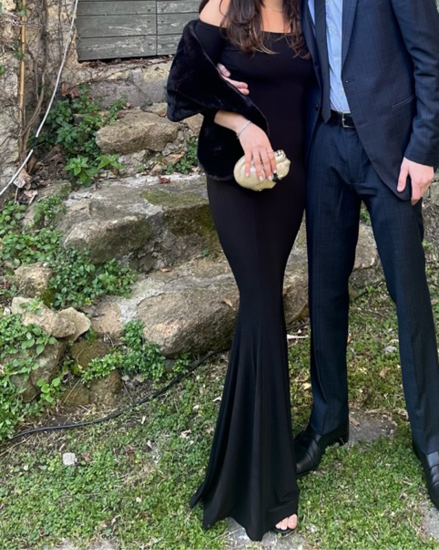 Norma Kamali Off Shoulder Fishtail Gown by Norma Kamali - Pickle