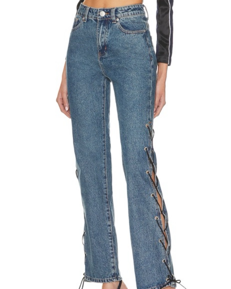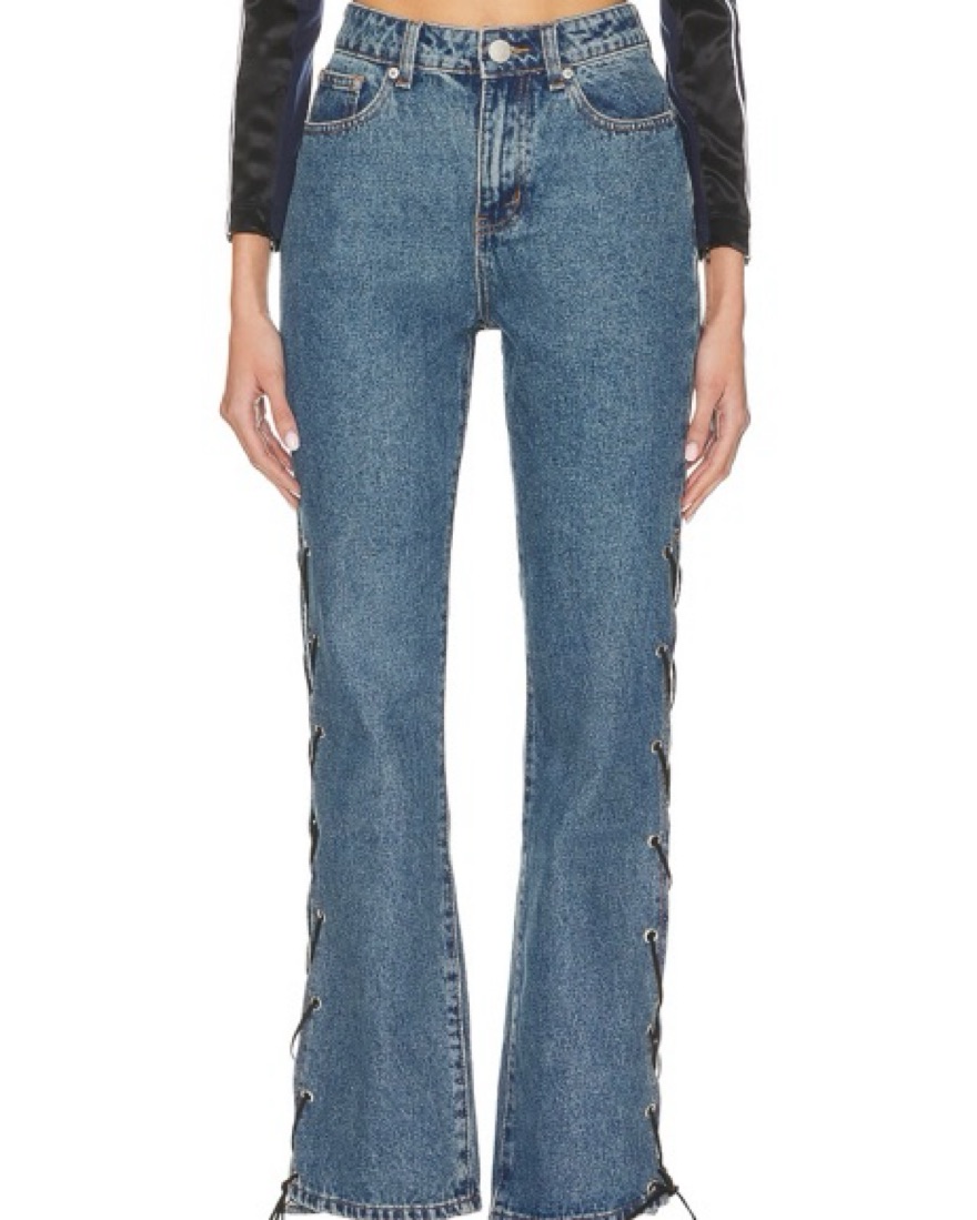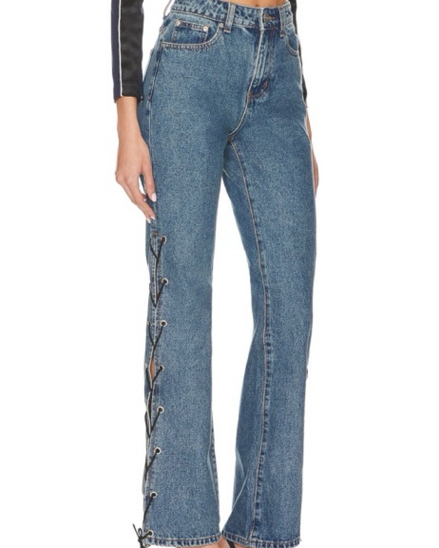 Lace Up Jean In Mid Blue Wash by Revolve - Pickle