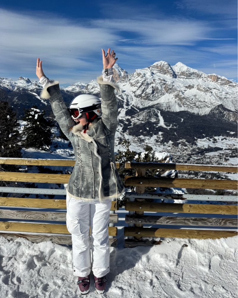 My most complimented jacket that will keep you incredibly warm, a blue-ish grey suede jacket with button clasps and cord detailing. Purchased from Scout La and lined with white rabbit fur.
