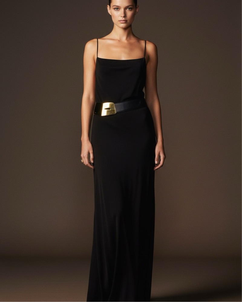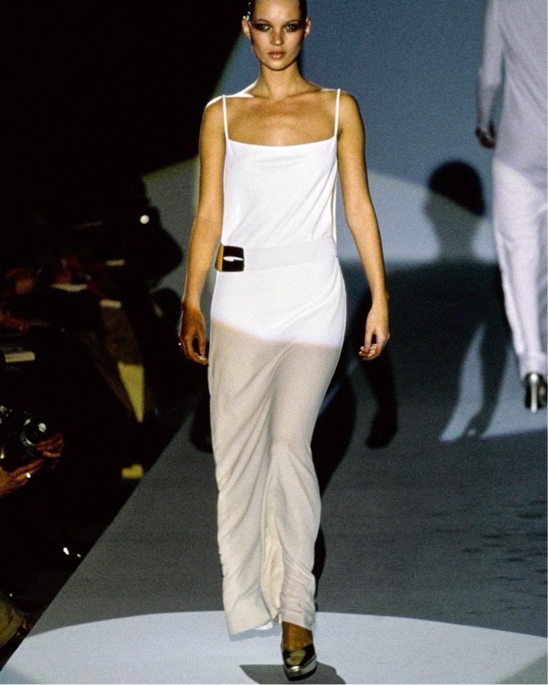 Iconic side cutout gown with chunky belt from Tom Ford’s most celebrated collection for Gucci. As seen on Kate Moss. This dress runs small, so best for a true 0.