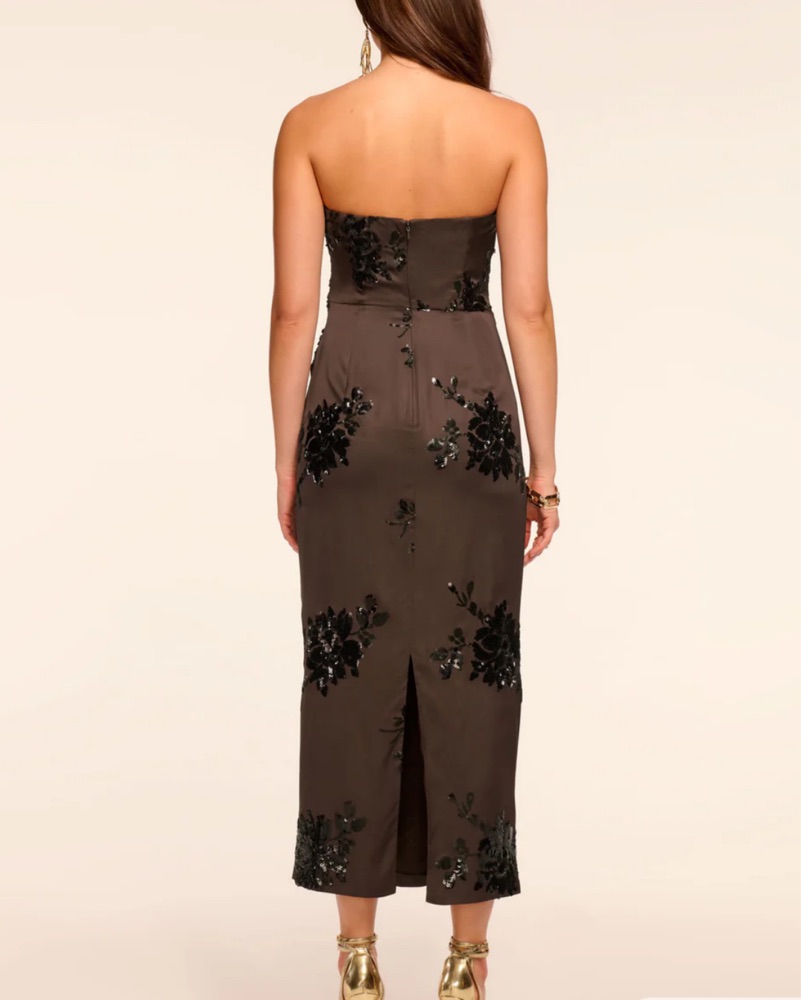 This stunning midi dress exudes elegance and sophistication. Perfect for a formal event or special occasion, the sequin embellishments add a touch of glamour.