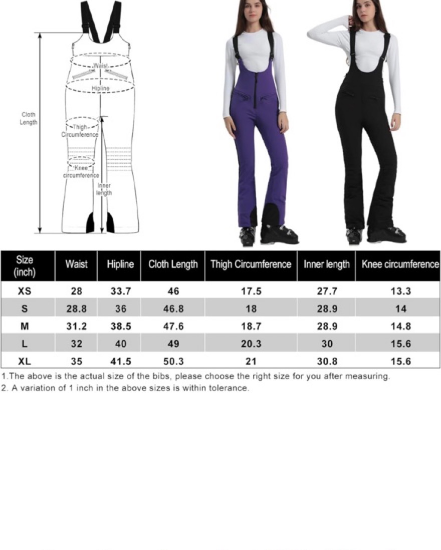 Snowpants worn for one trip, warm, fitted, bib - fit over ski and snowboard boots