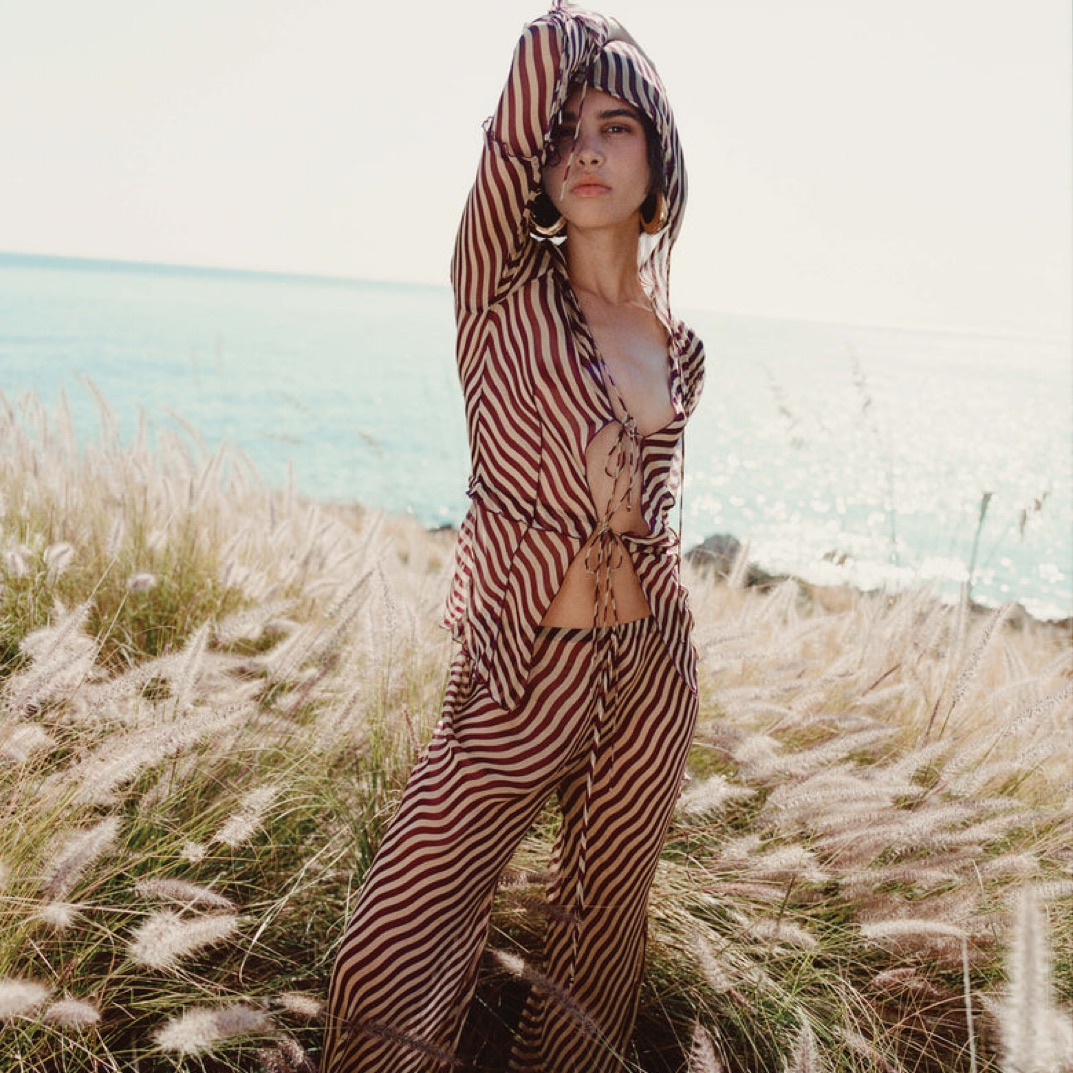 The top sizing runs smaller than the bottoms but size variation is normal for the brand.