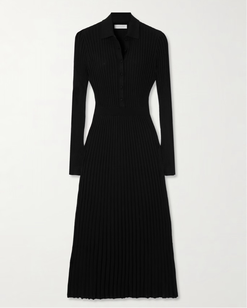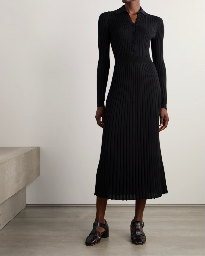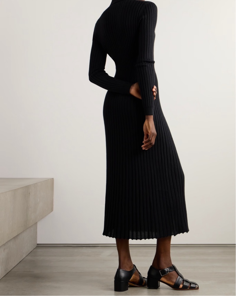 This elegant ribbed silk and cashmere midi dress exudes refined sophistication. Suitable for a variety of formal or semi-formal occasions, from work to cocktail parties to date nights.