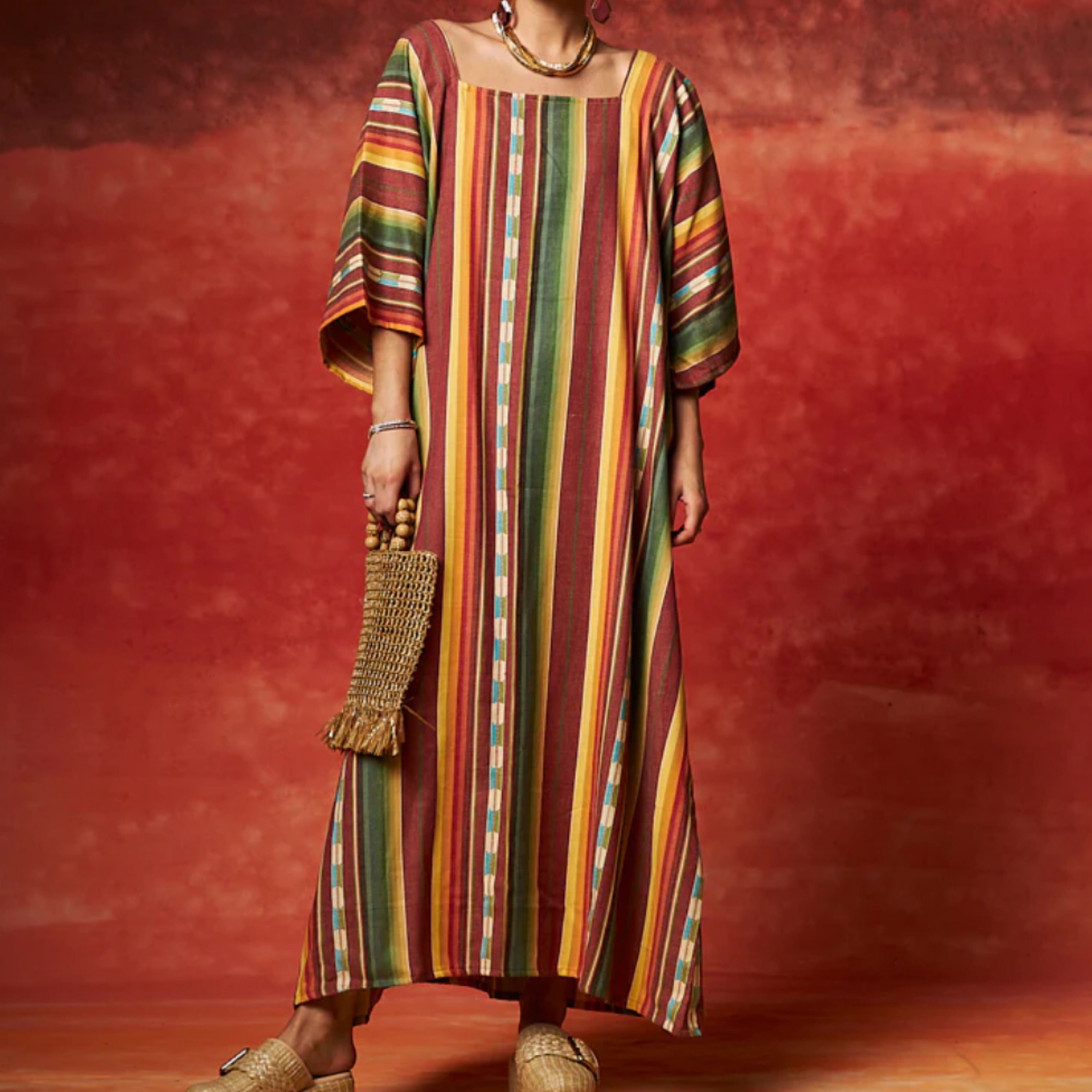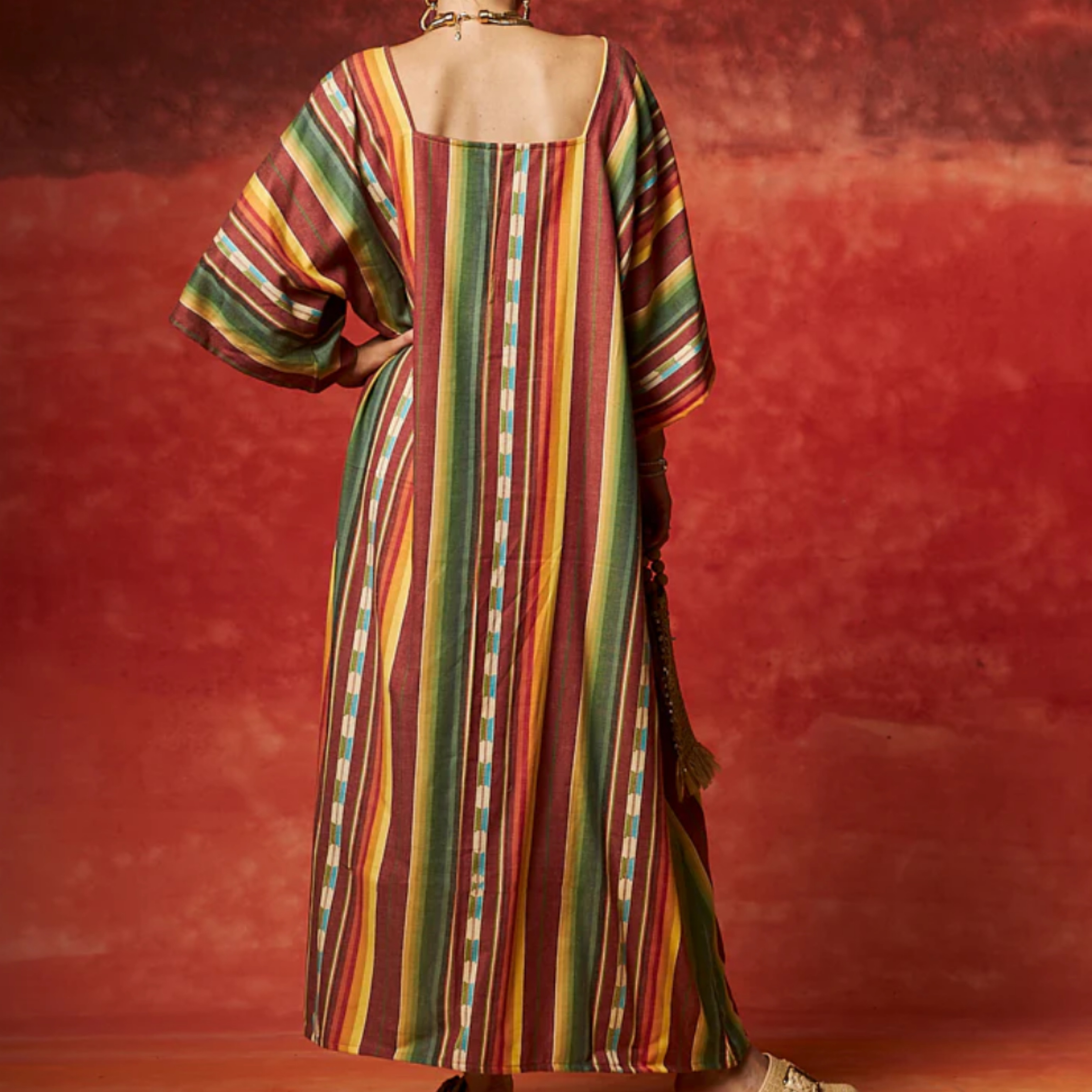 One-of-a-kind kaftan from Tela Mercantile’s Wild West collection! This sold out dress is perfect to style for any event, or worn casually with boots or a sandal. Oversized fit, Cotton, Do Not Wash or Dry.