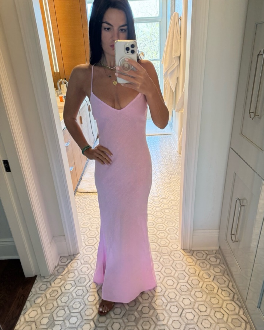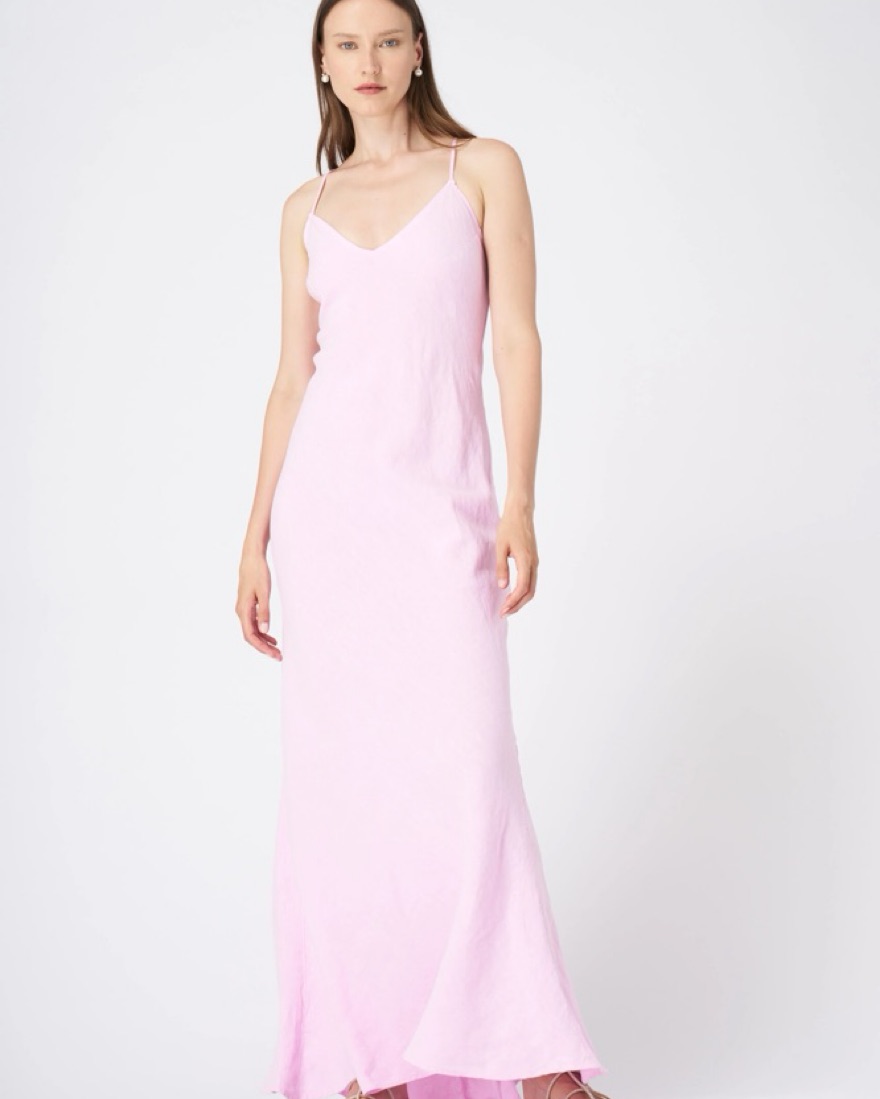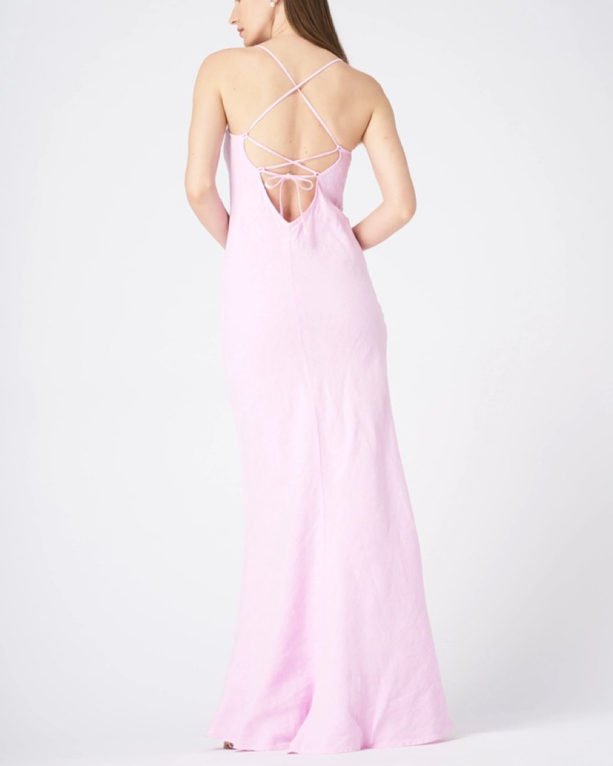 120%Lino pink linen maxi dress with adjustable strap and open back. Fully linen and lightweight so perfect for a summer event.