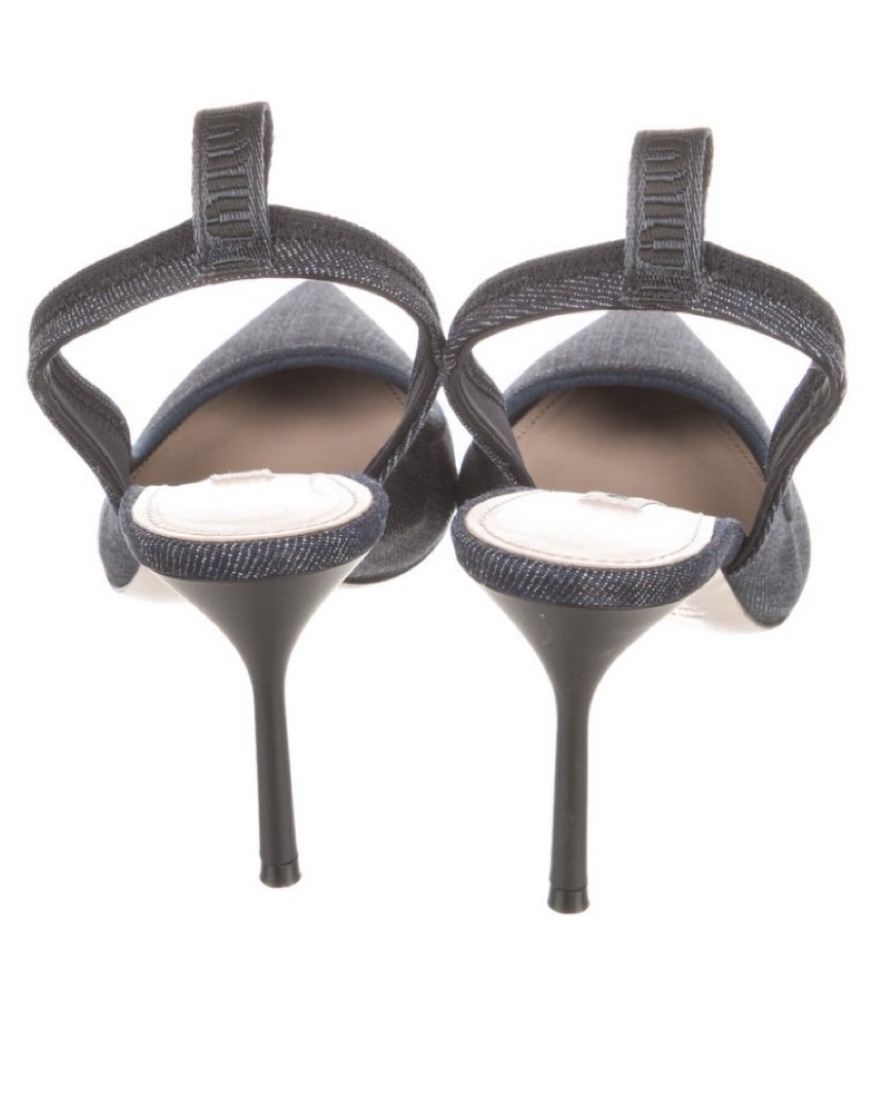 Miu Miu Denim Slingback Pumps • Blue • Printed • Leather Trim • Pointed-Toes • Size 37.5, fits like a 7