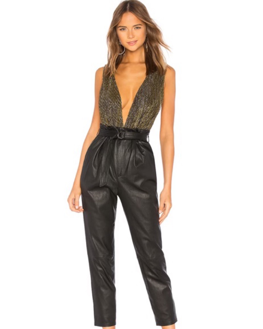 Deep V Bodysuit In Gold by Superdown - Pickle