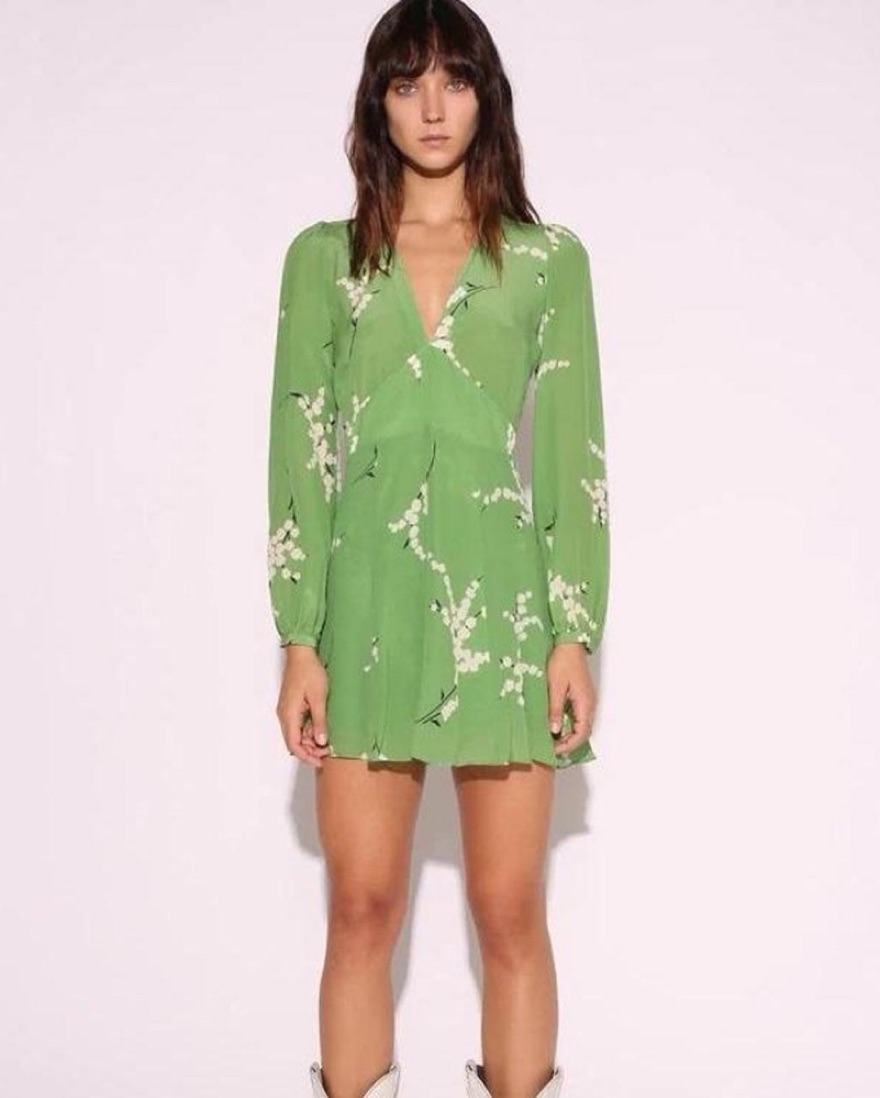 Realisation Par Green Floral Mini Dress by Realisation Par - Pickle