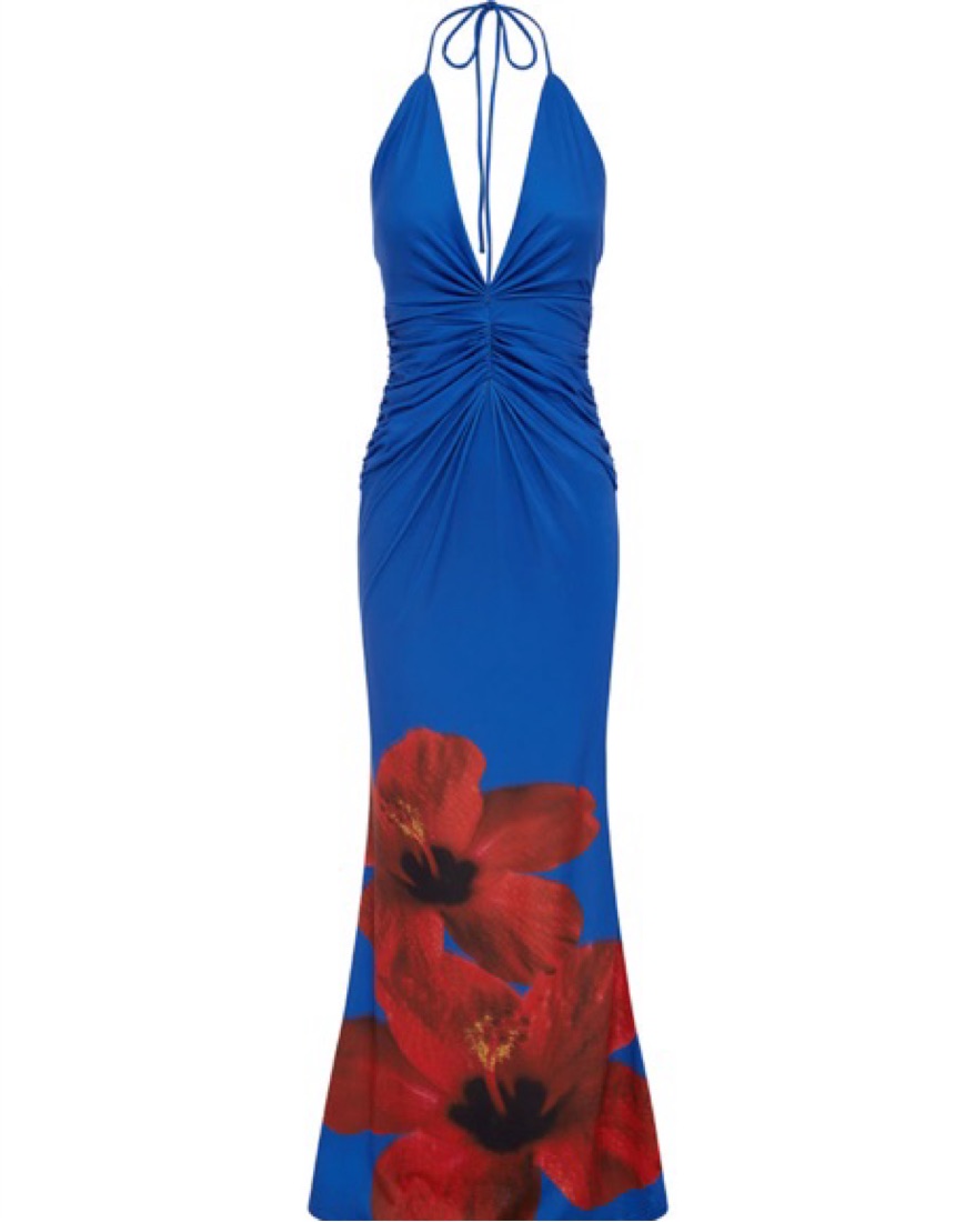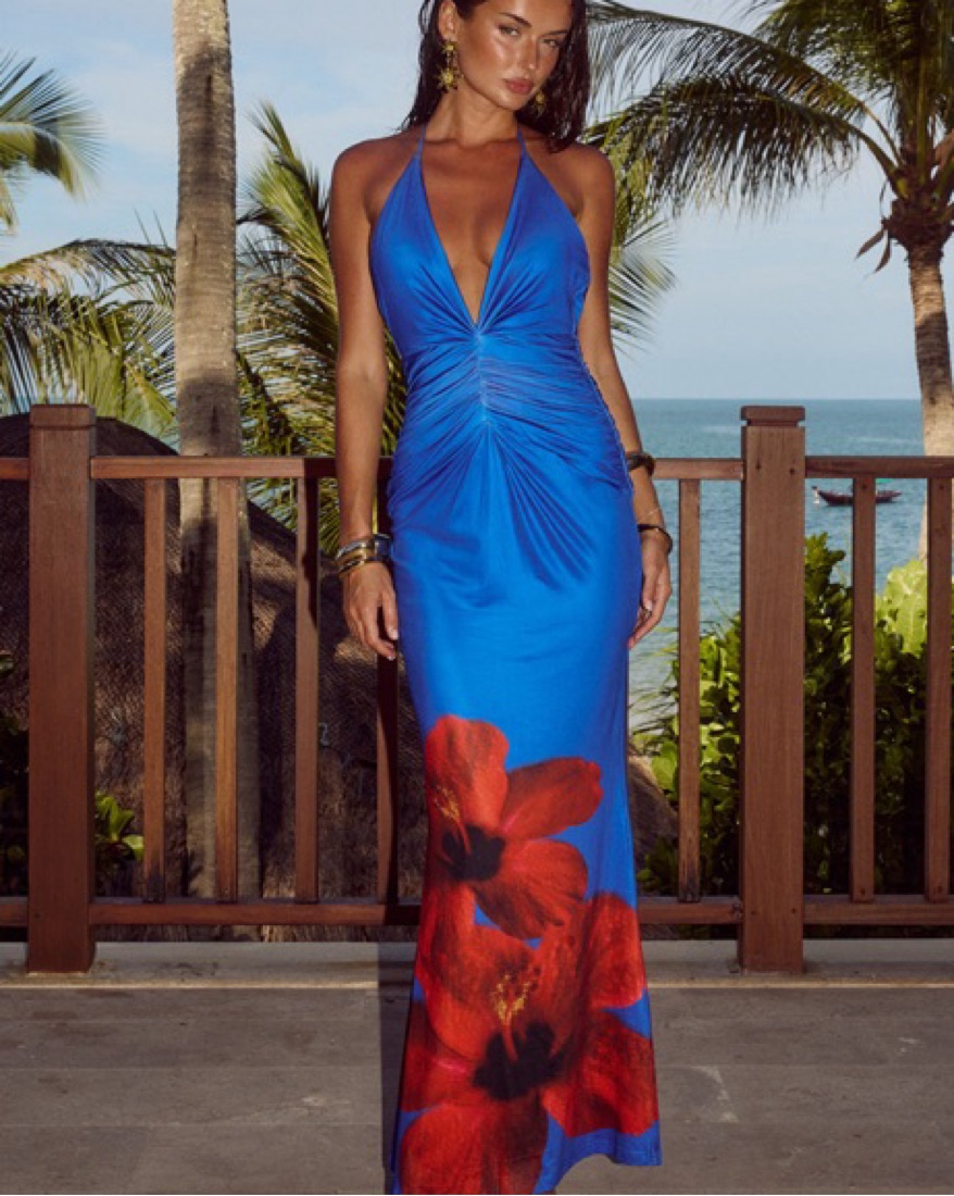 With a plunging neckline and beautifully placed floral print, our Primrose Maxi Dress is perfect for your next summer event. Size