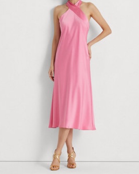 Lauren Ralph Lauren Satin Charmeuse Halter Cocktail Dress in Poolside Rose
