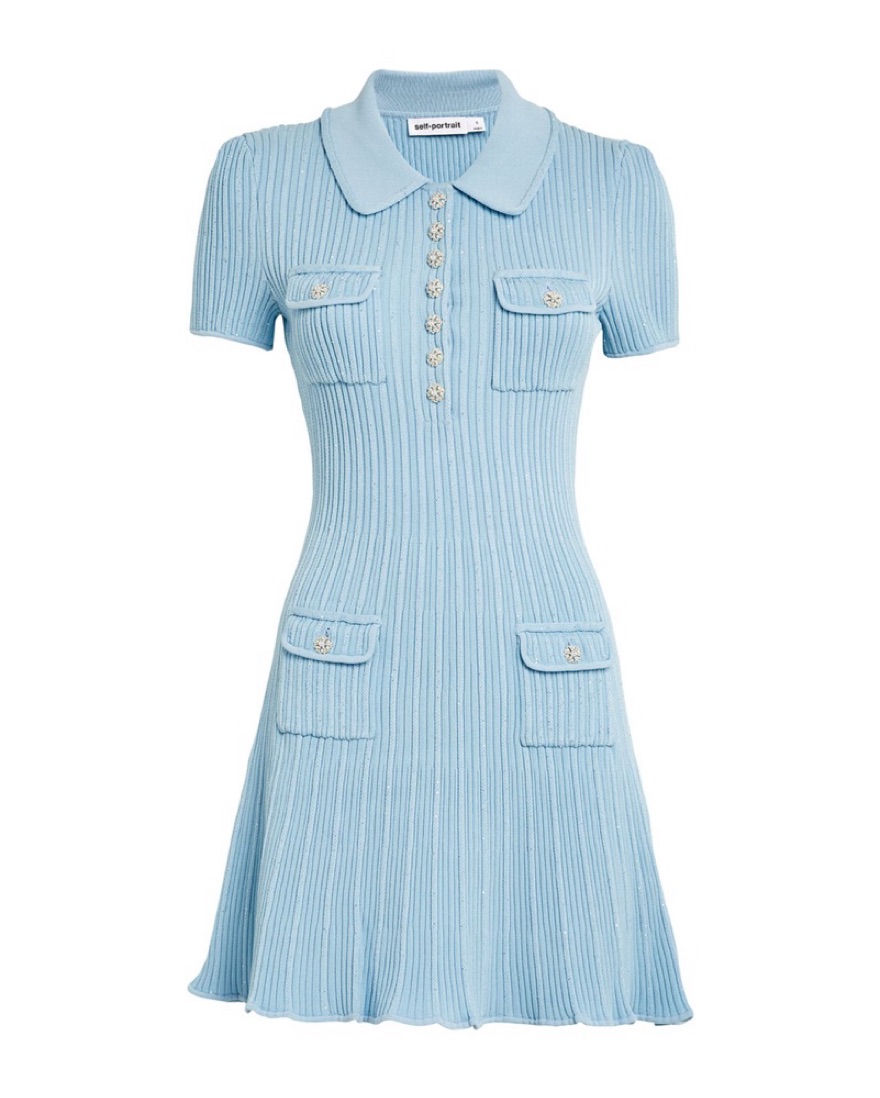 Blue Sequin Knit Mini Dress by Self Portrait - Pickle