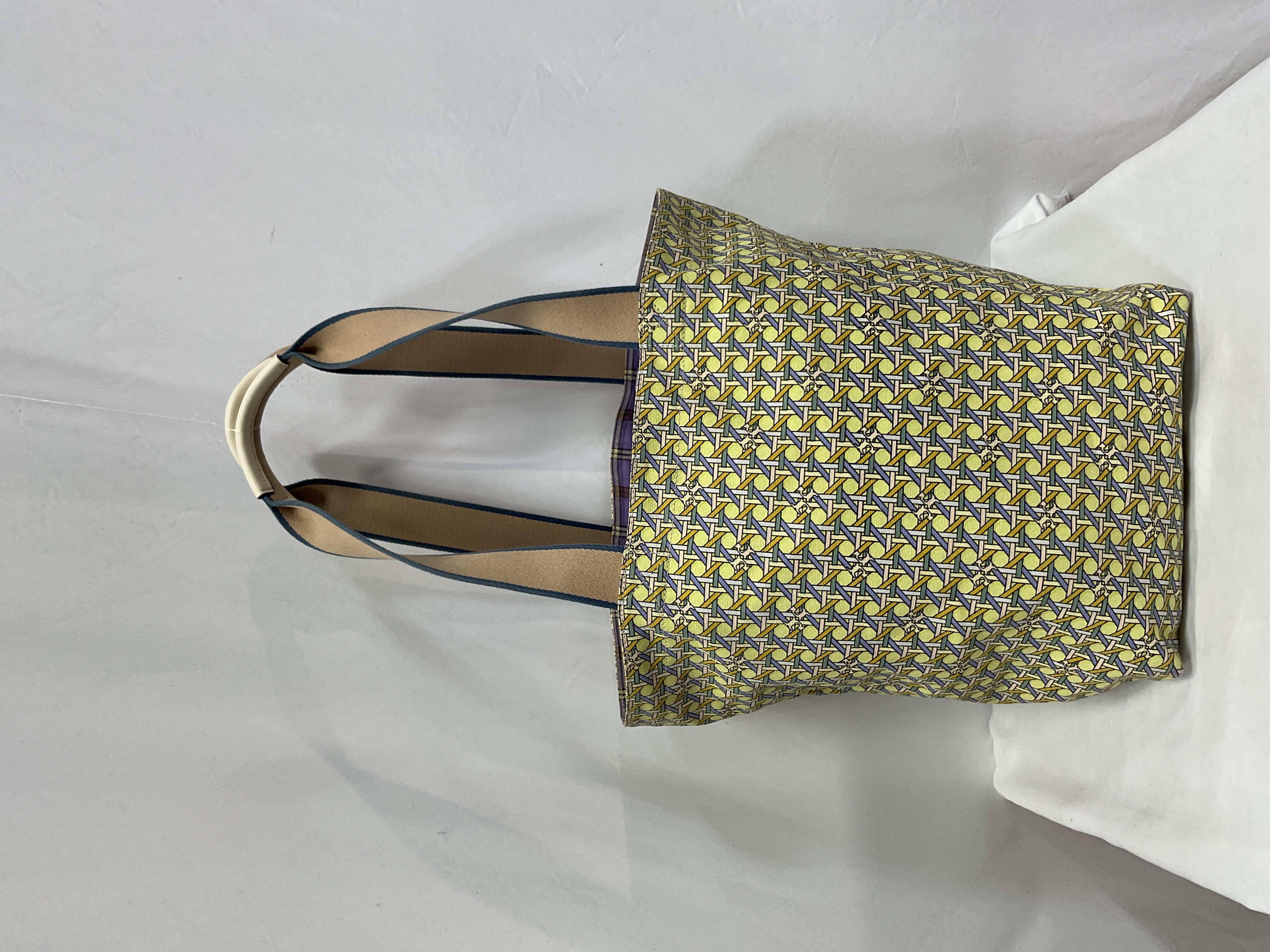 Bright basket-weave design adds instant sunshine to any outfit. Reversible style gives you two looks in one versatile tote. Perfect for farmers markets, beach days, or everyday errands.