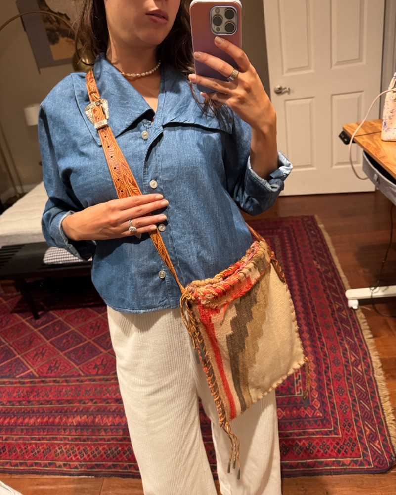 Boho Chic Denim Jacket with Embroidered Belt Bag