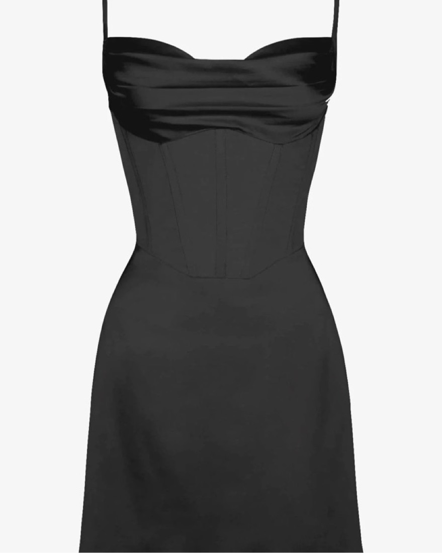 The black corset satin slip mini dress is an iconic must-have. Cut from our luxurious satin, this feminine cut features a flattering cowl neck line and signature corsetry cinching in your waist. The dress is fully lined for a non slip hold and has adjustable straps for the perfect fit. It zips to th
