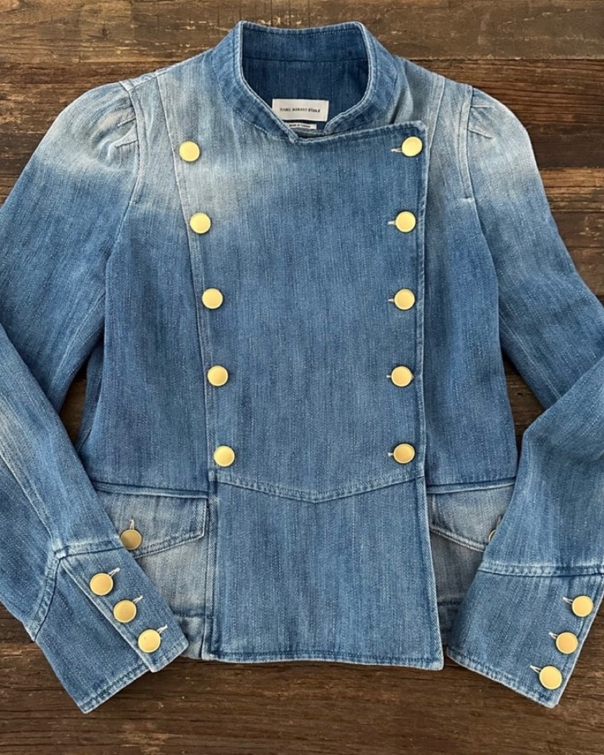 Isabel Marant Denim Jean Jacket with gold buttons, size L but has a slimmer fit