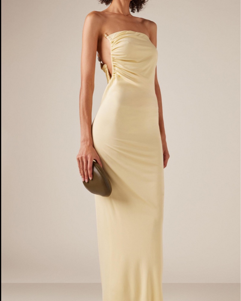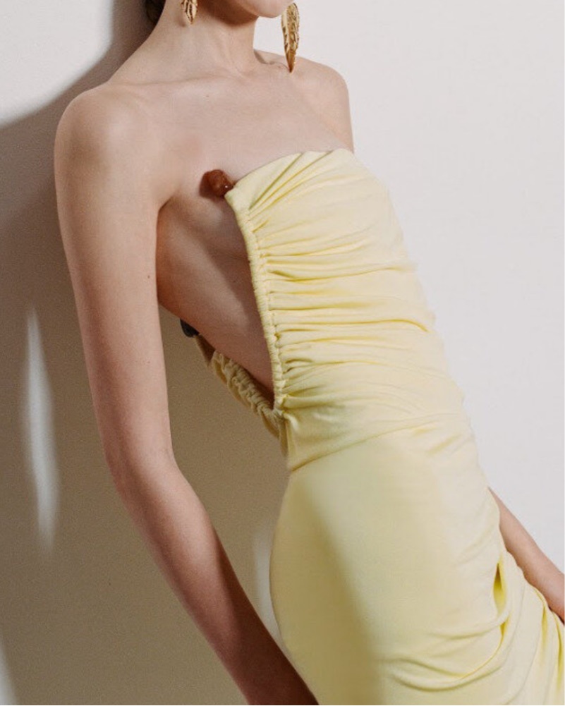 Christopher Esber odessa dress in Butter yellow dress with two ways to wear: straight neckline with cutout on the side (last 3 photos) or with the cutouts in front (first and second photos). altered for size US 0, super stretchy. Can fit up to size 4