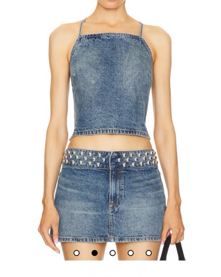 Studded mini skirt with matching open back top (I got the skirt tailored to be shorter)