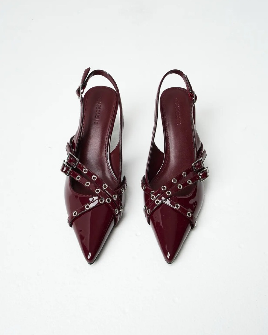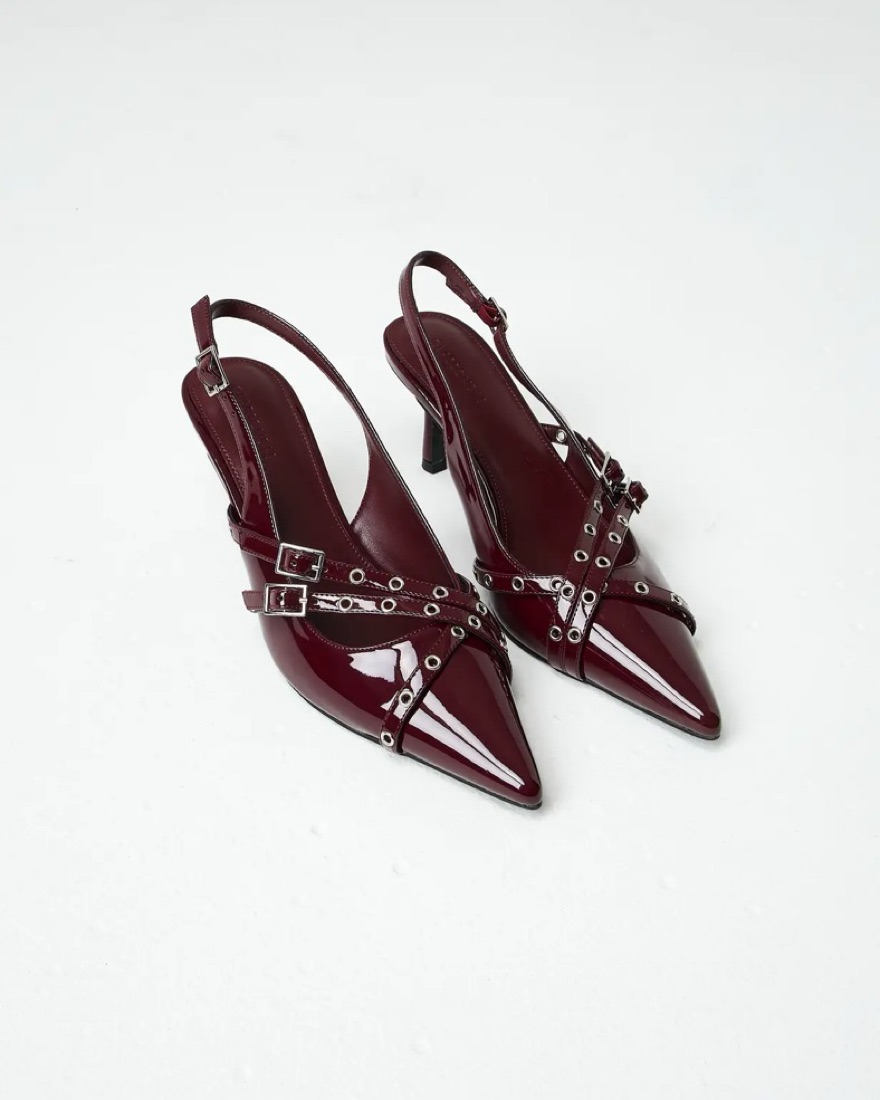 Renting my burgundy strappy studden kitten heel from glassons in a size 8 so cute for fall perfect fall heel gorgeous color similar to the miu miu heels