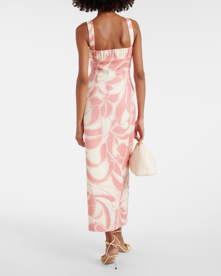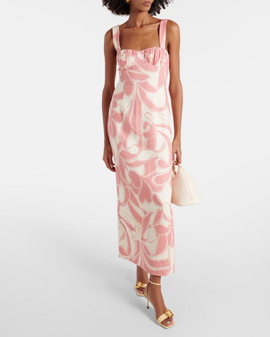 This midi dress features a bold floral print that exudes effortless style. It's perfect for a summer wedding or garden party or can be dressed down for a dinner out!