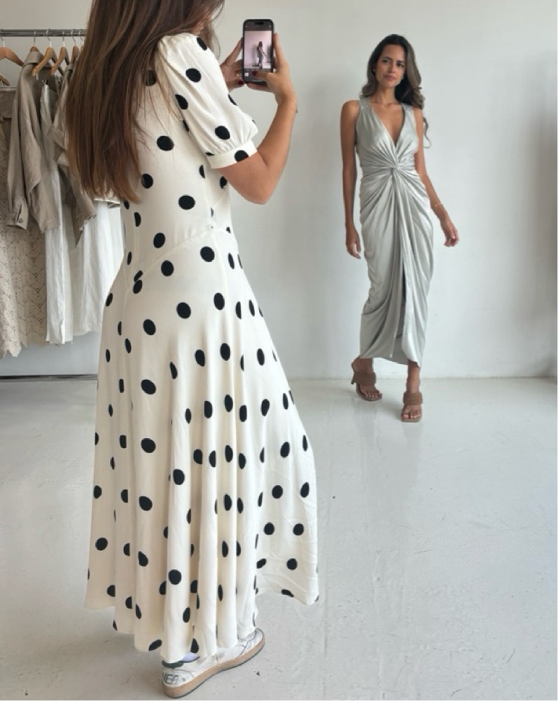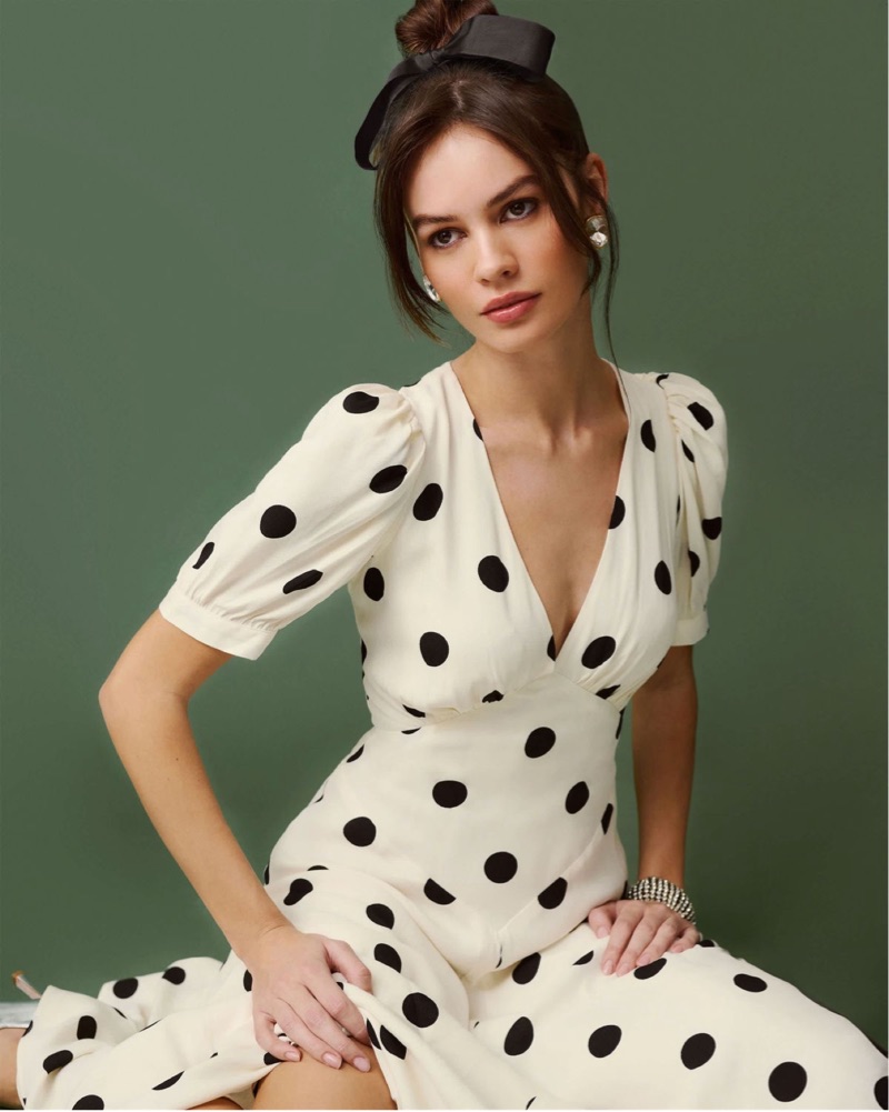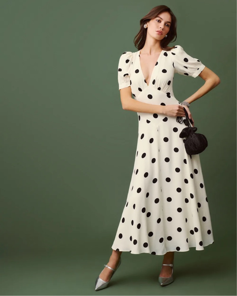 Reformation Petites Naira Dress size 0 “Pluto Dot” print. The cutest polka dot print. Draped beautifully on the body, has great movement and in perfect for any season, from a holiday party to farmers market!