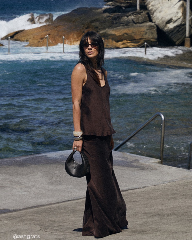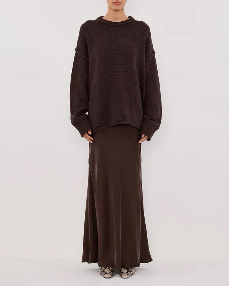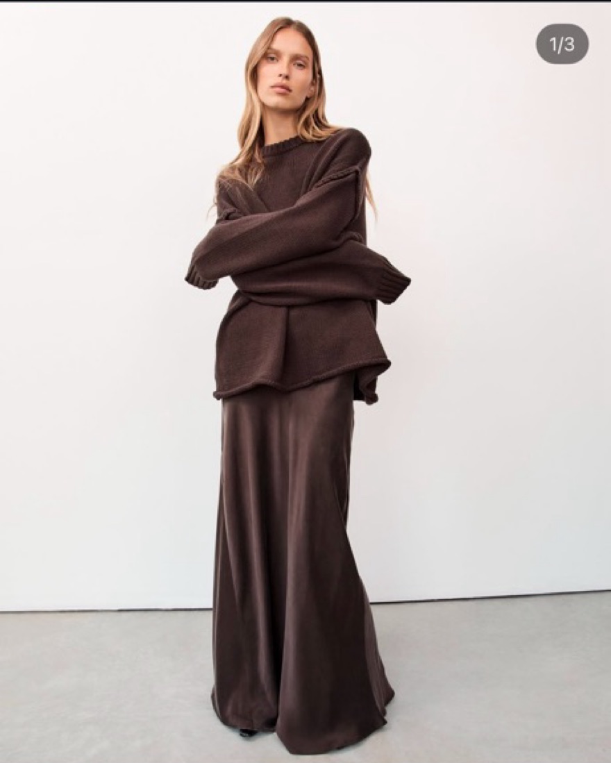Dissh Colette dark chocolate / espresso 100% silk midi skirt (US 2). Mid rise silk midi skirt - I’m 5’3 and hits at my ankles! Perfect to dress up or down