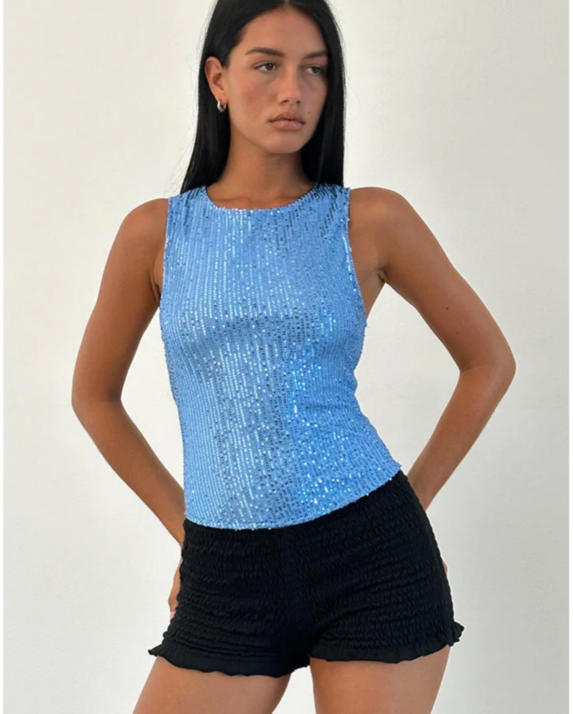 Motel Rocks Blue Sequin Top