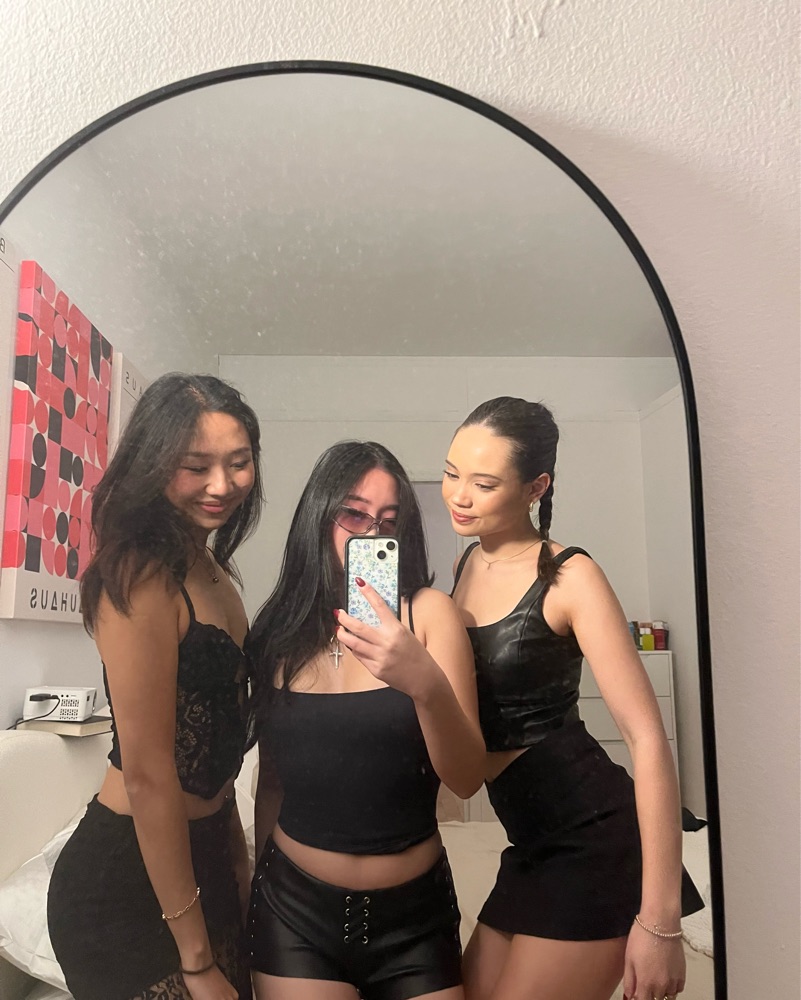 Leather micro shorts, perf for a concert or a rave