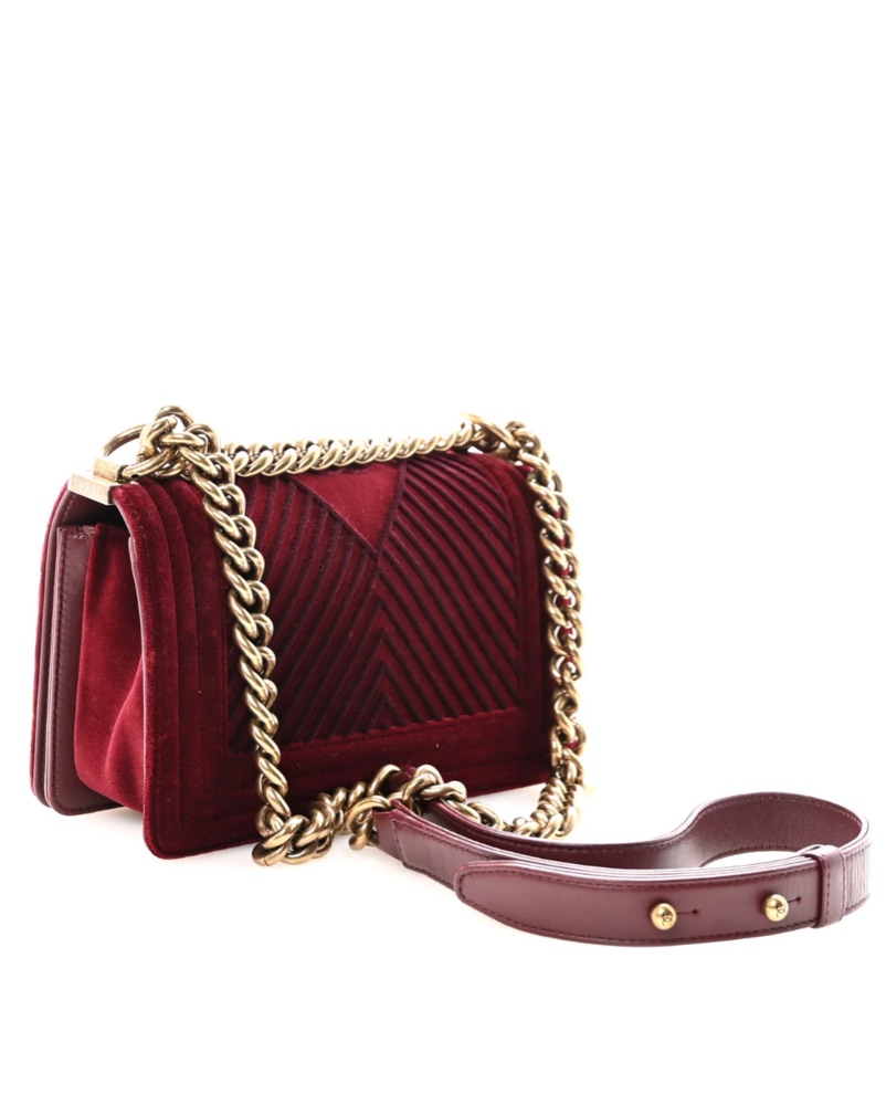 This luxurious Chanel burgundy velvet crossbody bag is perfect for dressing up your casual or formal looks. The gold-tone hardware and chain strap add a touch of elegance.