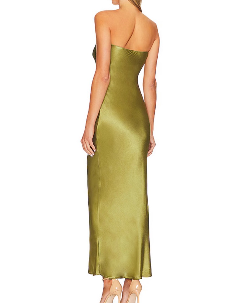 REVOLVE STRAPLESS MIDI DRESS IN OLIVE by SNDYS - Pickle