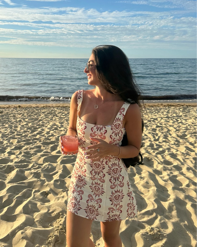 This chic sundress is perfect for a day at the beach or a summer night out. The vibrant pattern and flattering silhouette make it a versatile and stylish choice.