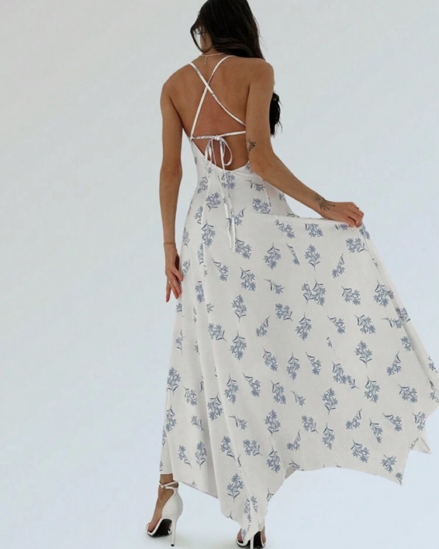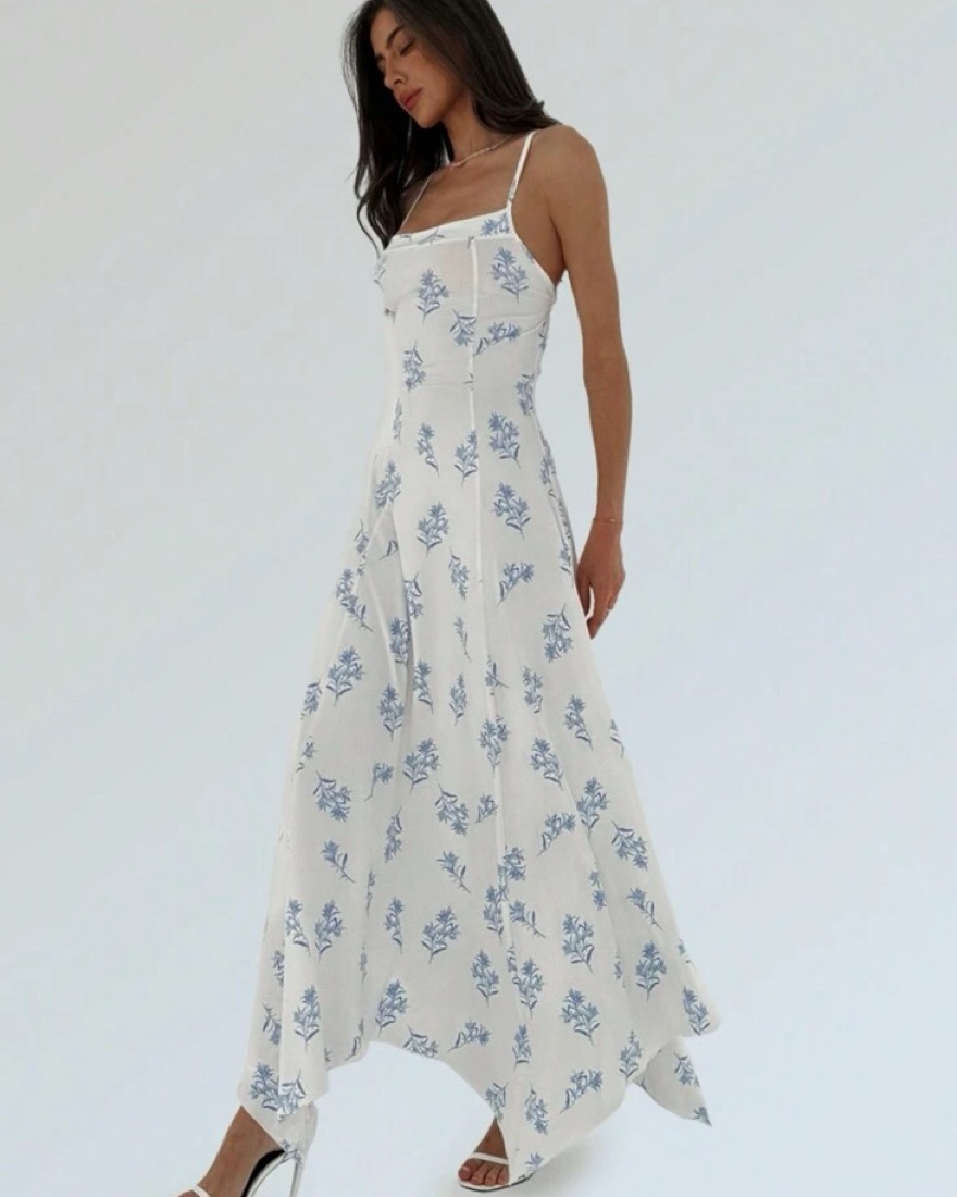 White And Blue Floral Maxi Dress