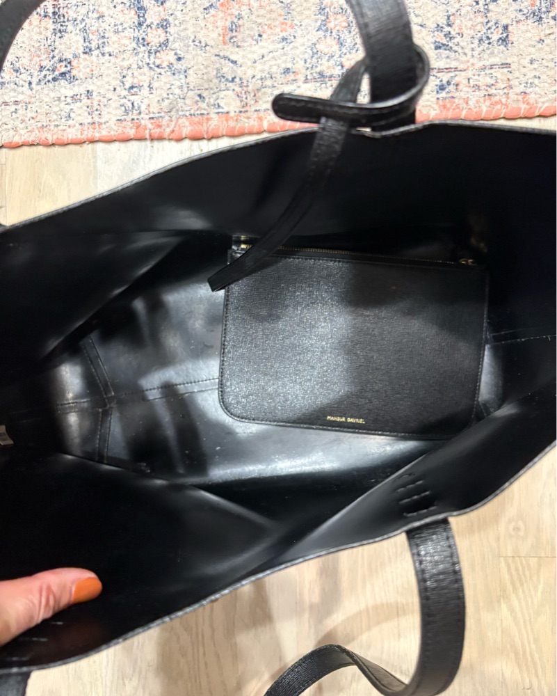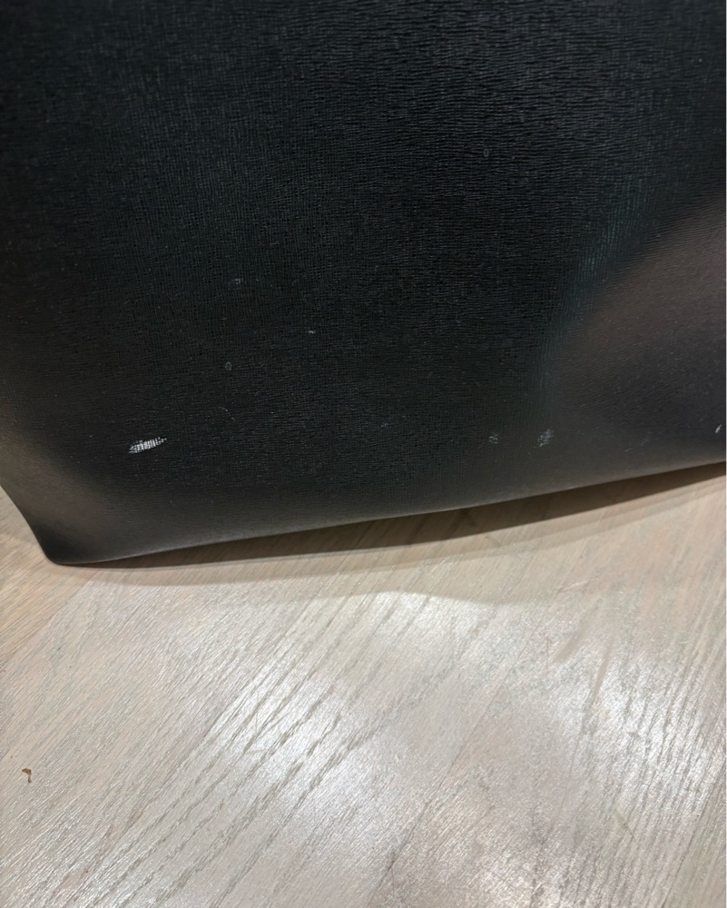 This chic and versatile tote bag is perfect for everyday use or for elevating a casual outfit. It can easily transition from the office to a night out. Detachable interior pouch. 13” wide x 11” high x 6” deep. Small scuffs.