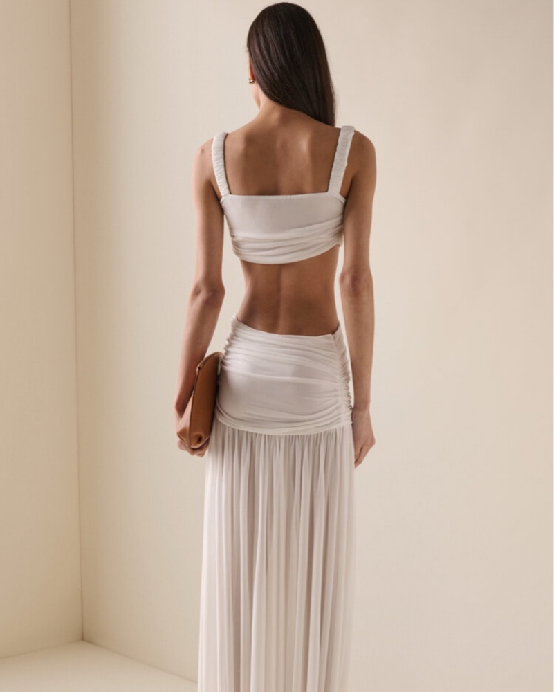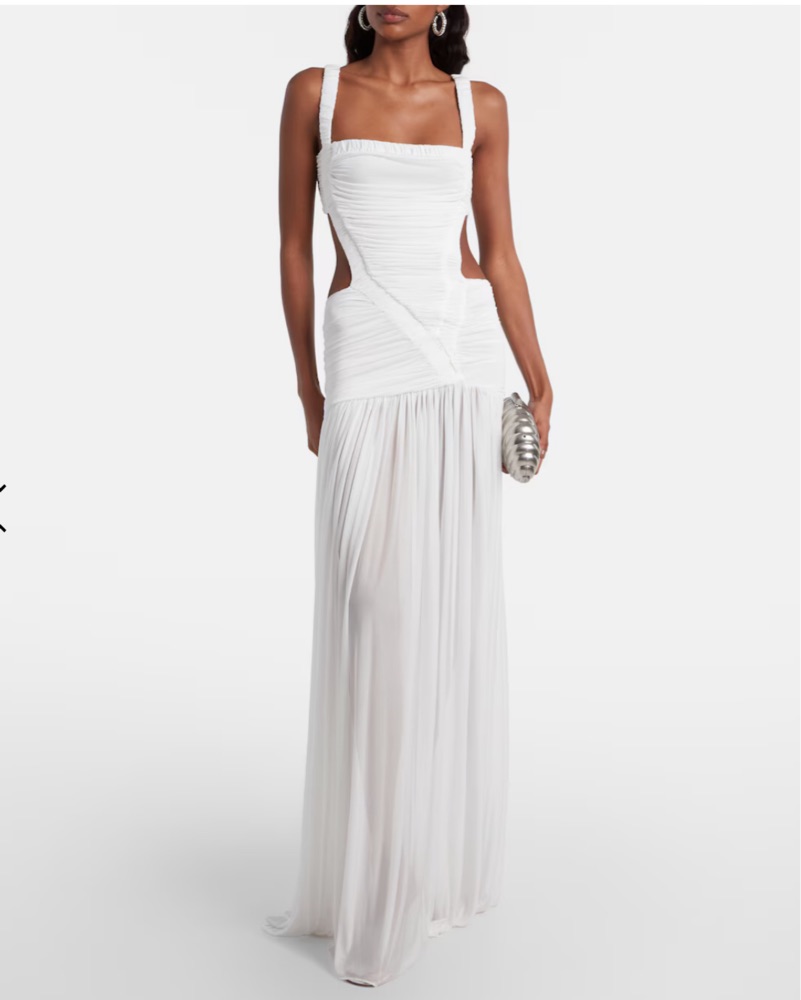 This stunning Orion Separation white gown from Christopher Esber’s new season - hand sculpted ruching with a fluid, gathered skirt