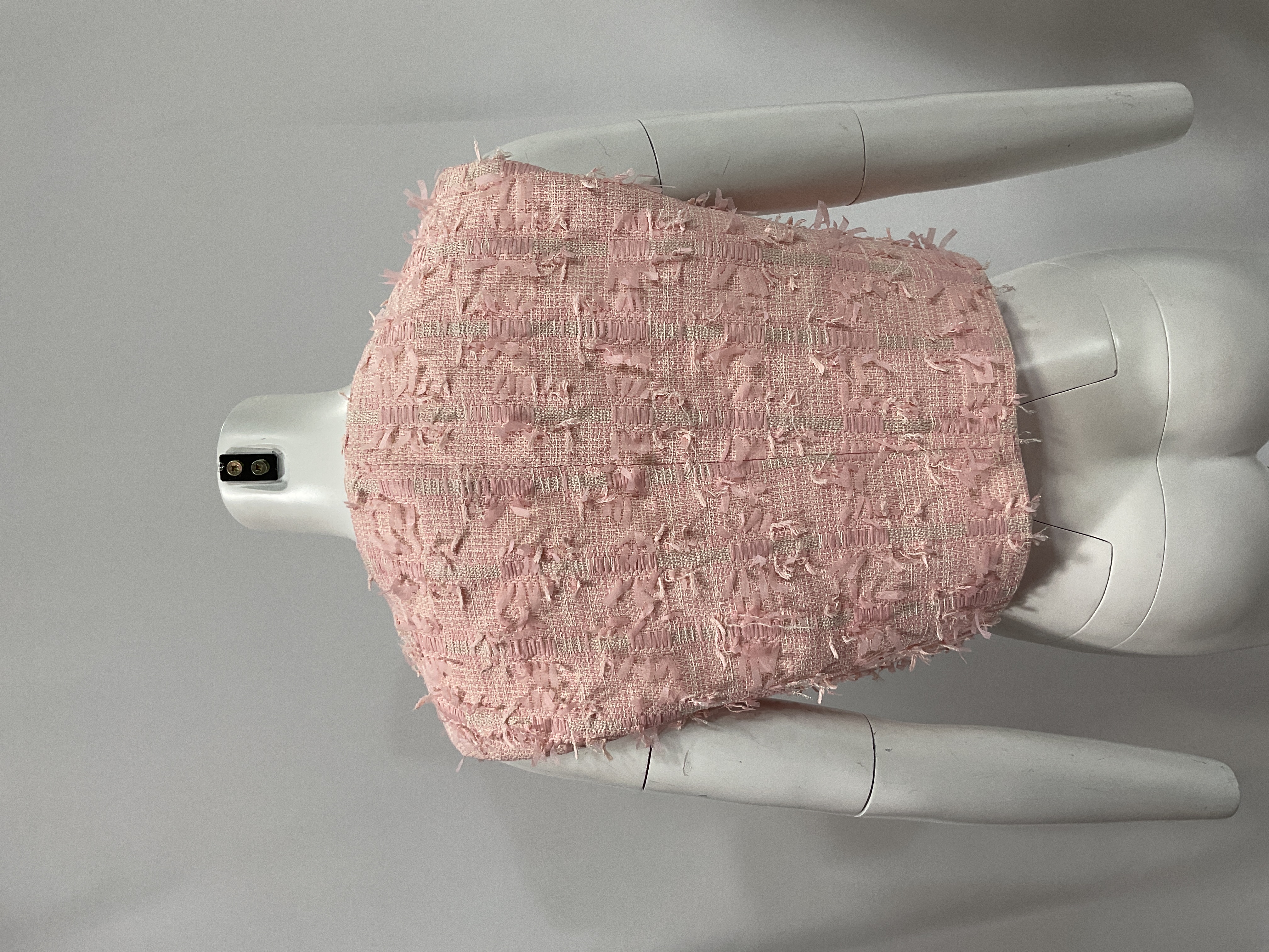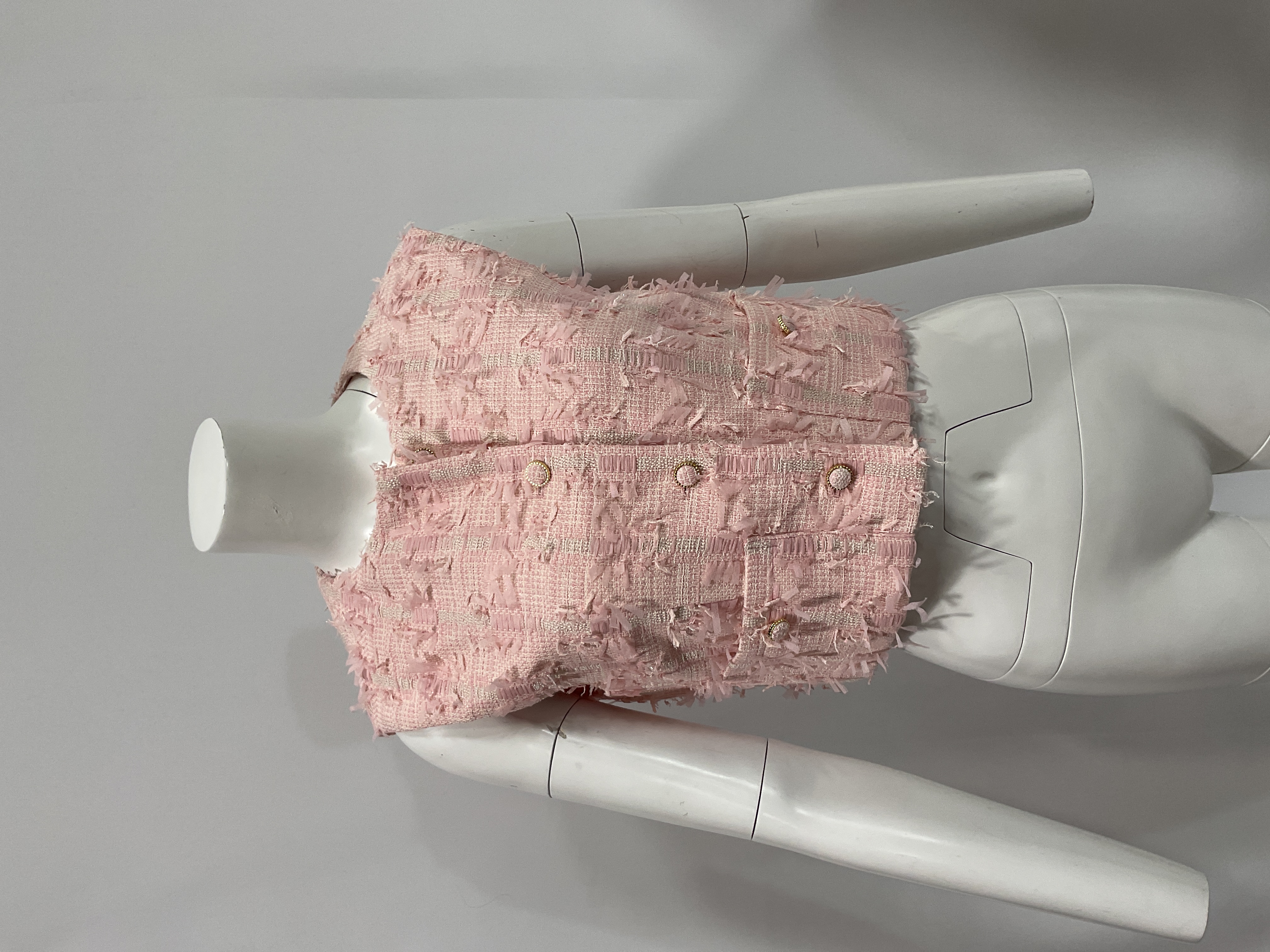 Textured pink tweed adds instant polish to any outfit. Perfect for the office or weekend brunch with a feminine, tailored fit.
