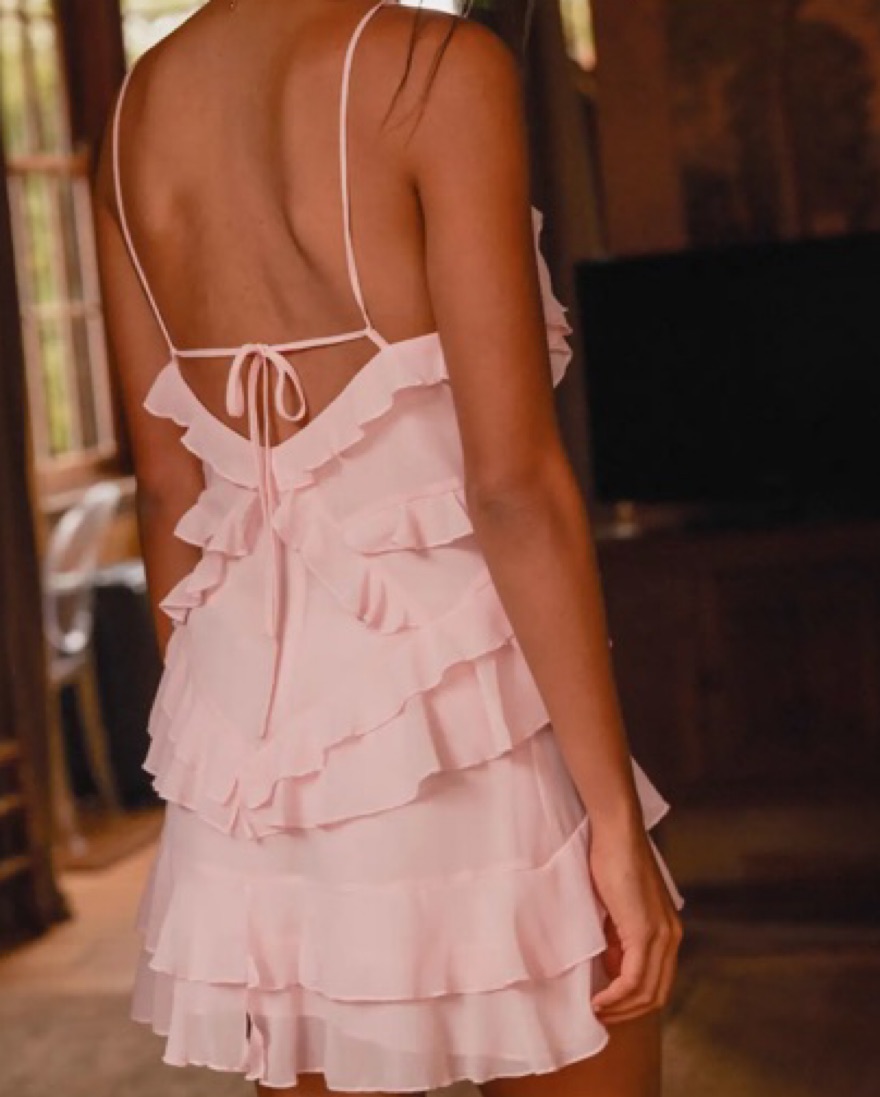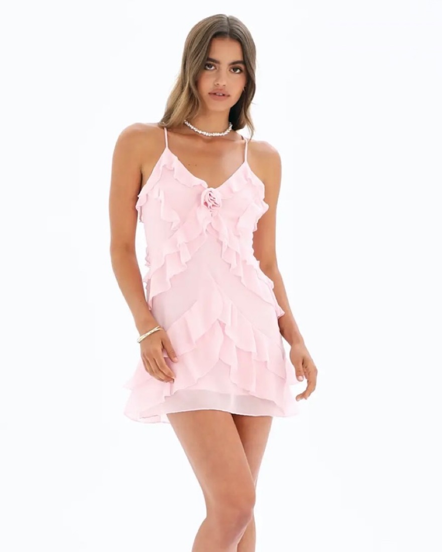 Renting my pink ruffle dress from glassons, fanci club vibe ***rose on the middle is missing*****