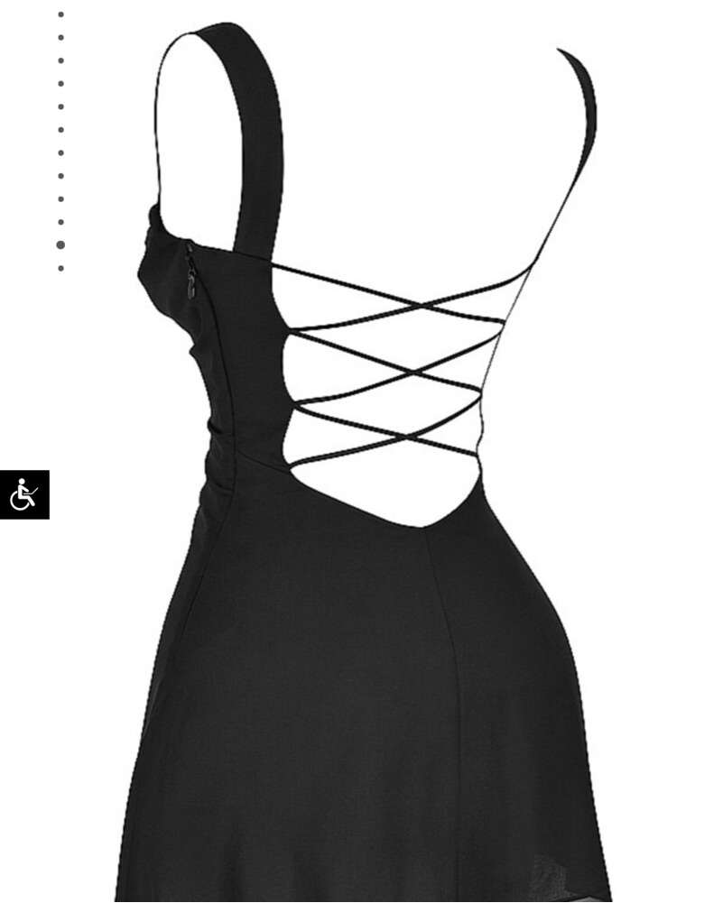 Mistress Rocks Small Black Strappy Back Mini Dress. I had the bust area taken in a bit for small chest. Super elegant gorgeous dress