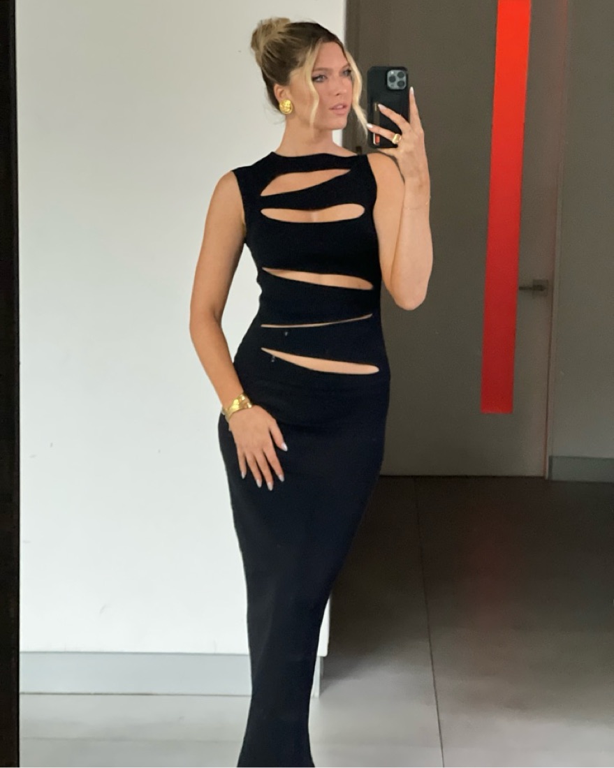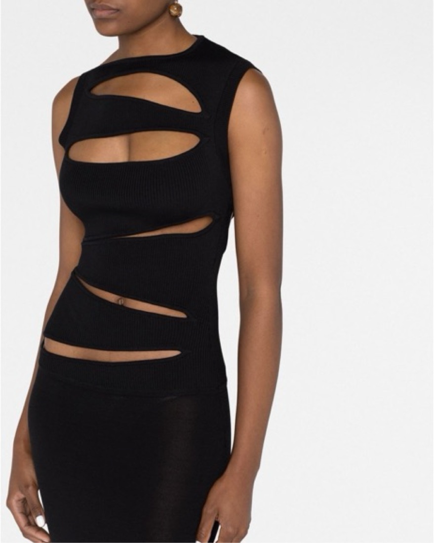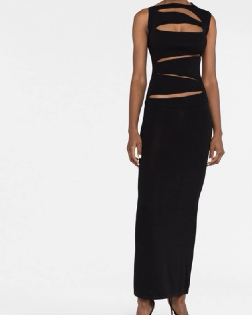 Knitted slashed dress from christopher esber. Round neck, sleeveless, midi length, slightly sheer in harsh lighting. Size xs. Would fit 0-4