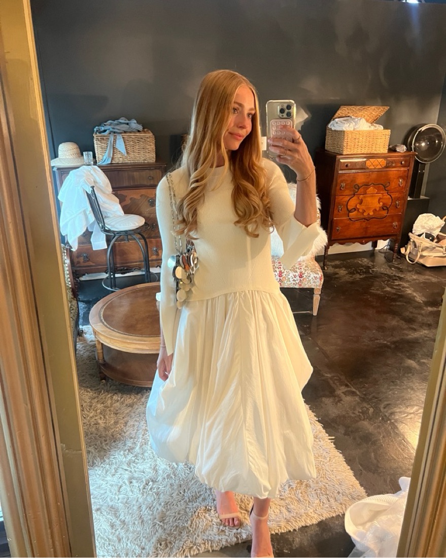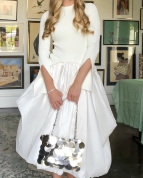 Simkhai white kenlie dress only worn once. One of my favorite dresses ever, so not sure I even want to rent it out since it’s white, but will rent to someone who will take good care of it!! No self tanner. If there’s any stains or spills you’ll be responsible to dry clean before returning it.