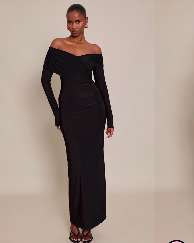 PLT Black Off The Shoulder Maxi Dress by Pretty Little Thing - Pickle