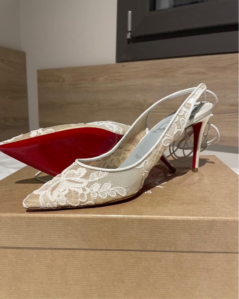 Classy red bottom lace up heels. Slight wear on bottom of shoe but otherwise great condition! Size 36.5