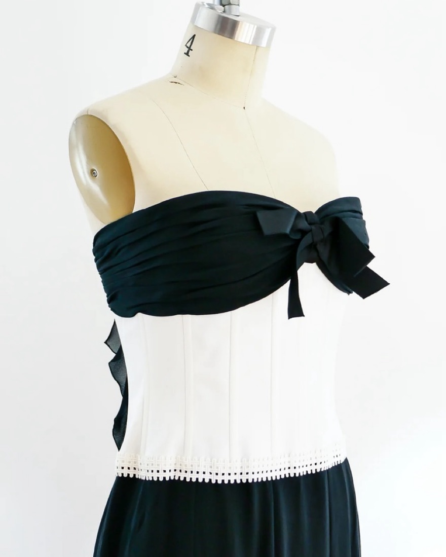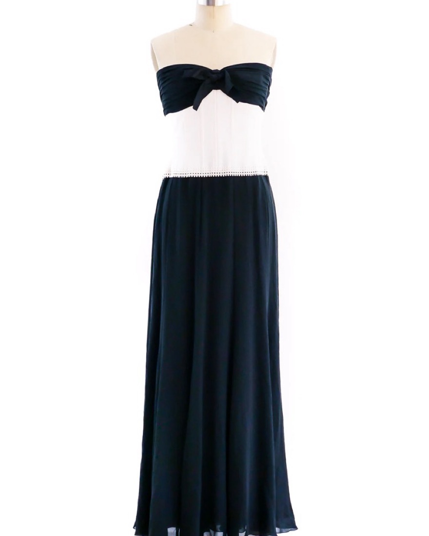 Extremely rare vintage Chanel corset gown in perfect condition. Originally sourced from a consignment shop in Monte Carlo, this dress is show stopping and perfect for a black tie wedding. It is my favorite dress ever. It has a structured corset bodice and is impeccably made.