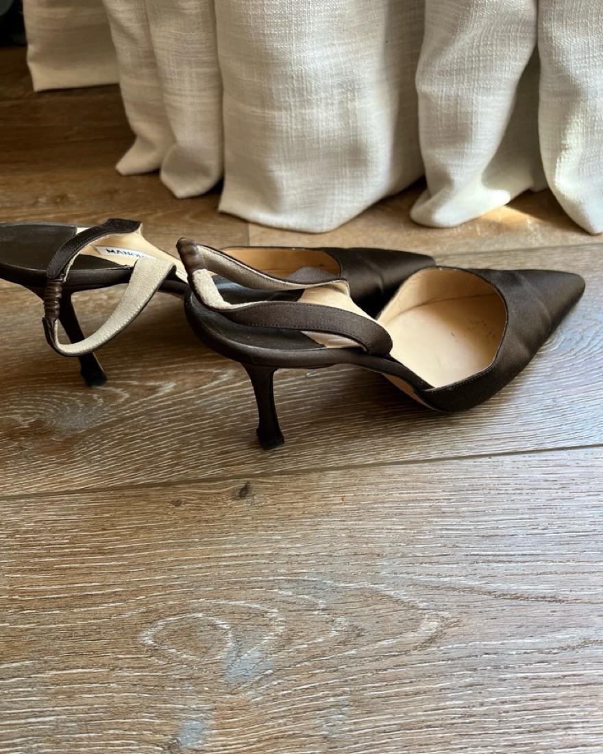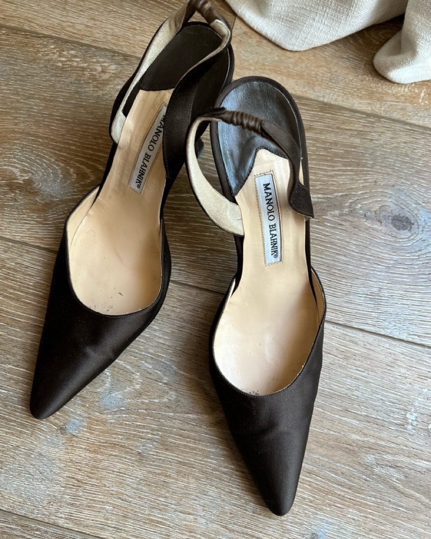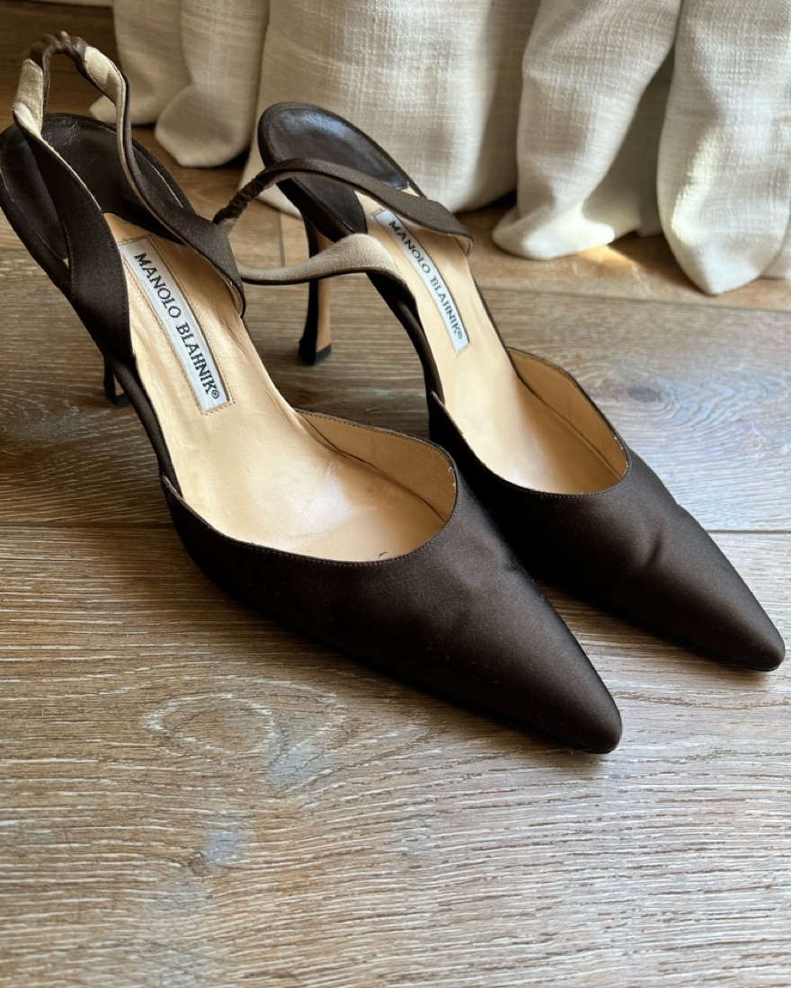 Manolo Blahnik Brown Slingback Heels by Manolo Blahnik - Pickle