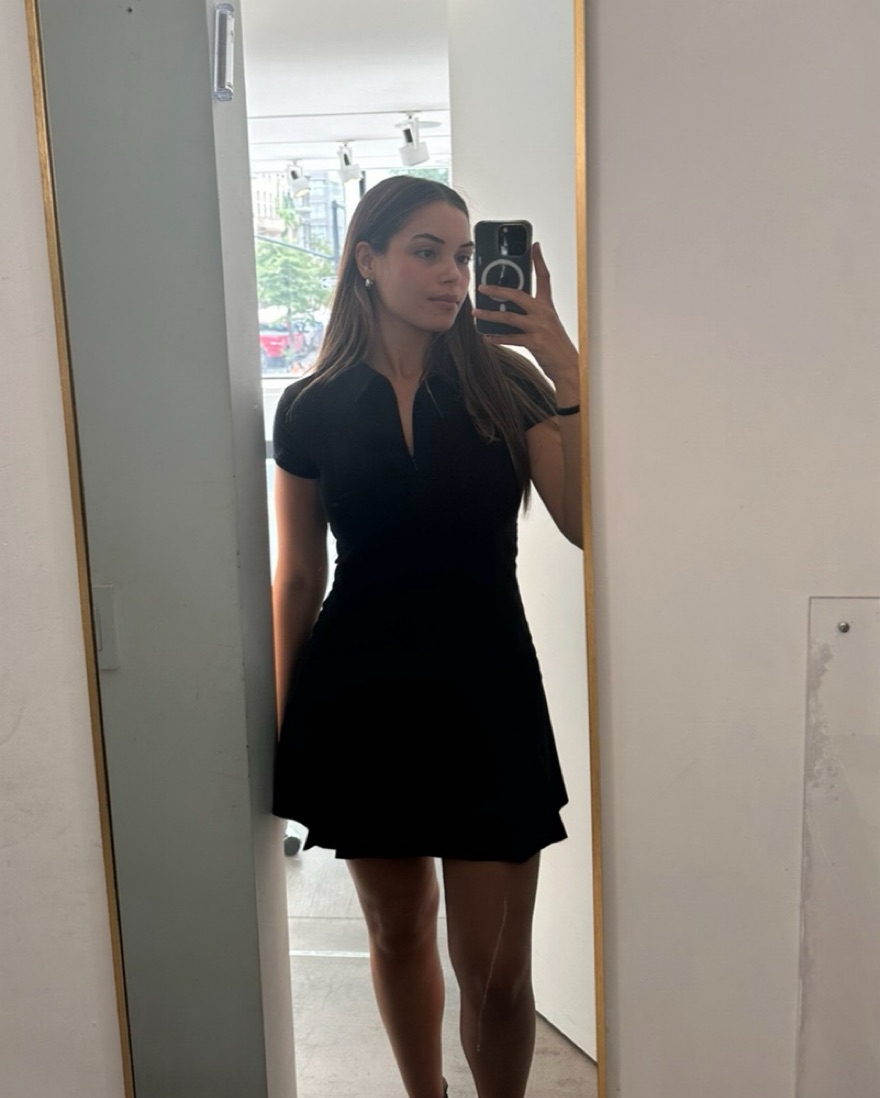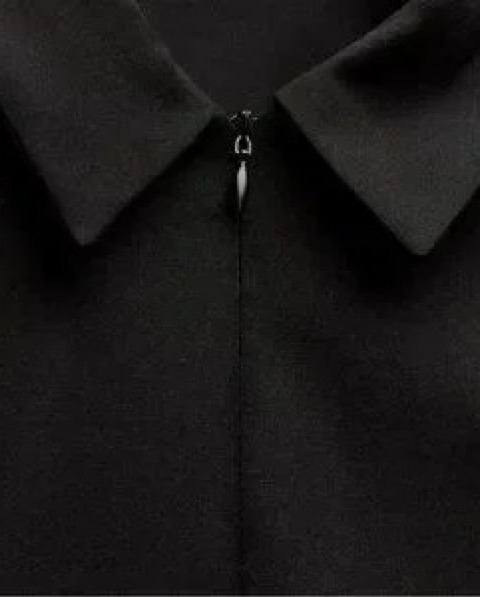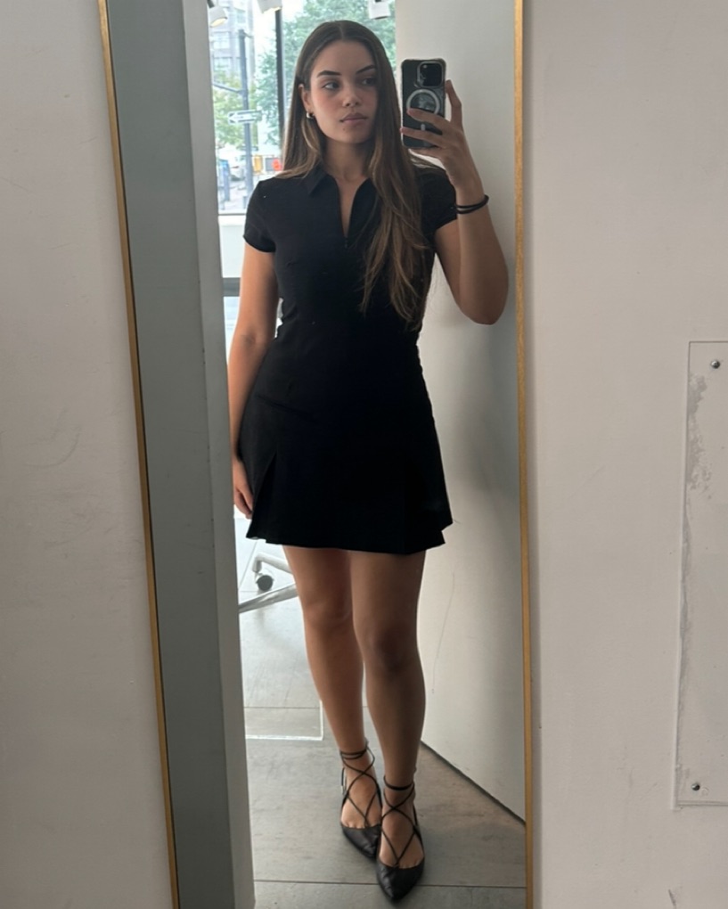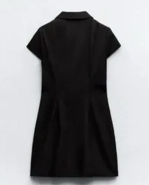 Worn once. Mini black dress with front zipper. Pleated at the bottom and snatches the waist. The dress is pretty short, for reference im 5’4” but I have wide hips. Super cute to dress up or down!
