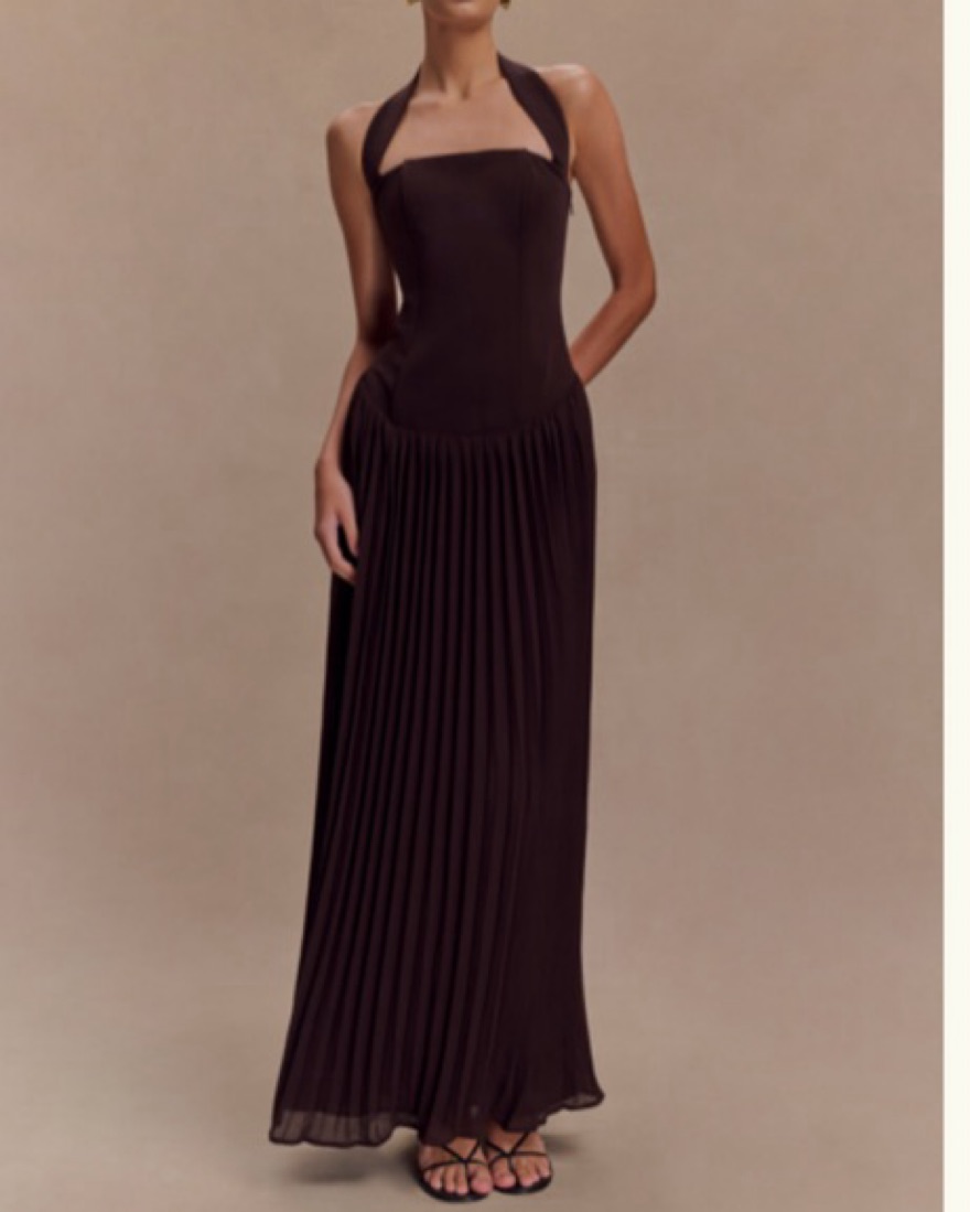 Meshki Stacie Pleated Halter Maxi Dress