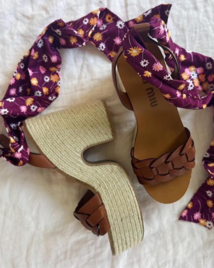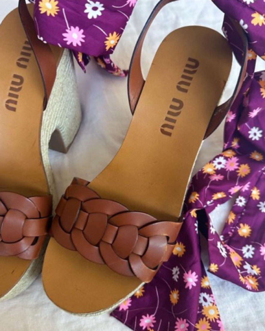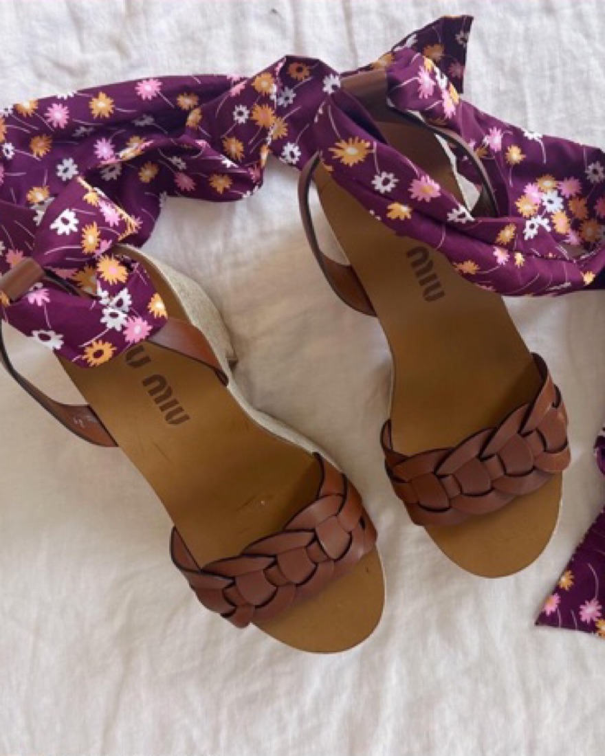 Vintage Miu Miu platform heels with silk ankle wraps. In like-new condition incl. box and dustbag if bought. Size IT 39.5, 5” heel including 2.5” platform