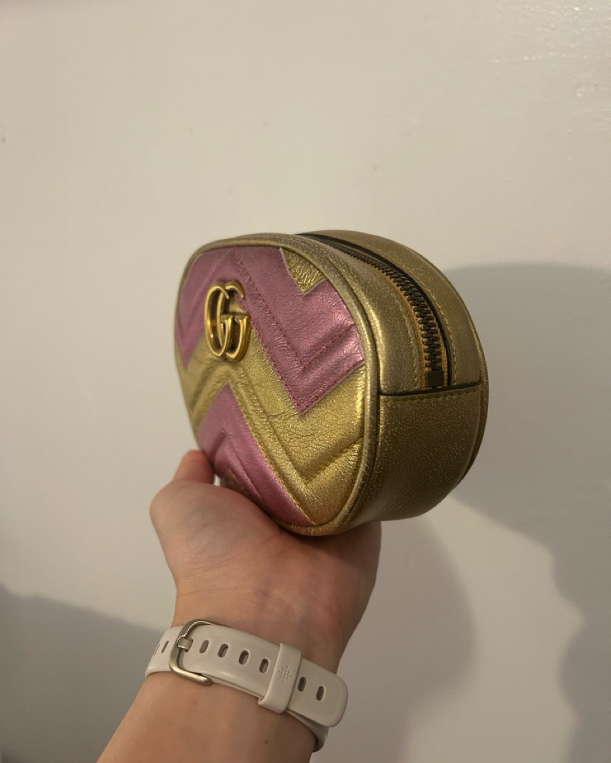 Gucci Marmont Gold And Pink Belt Bag by Gucci - Pickle